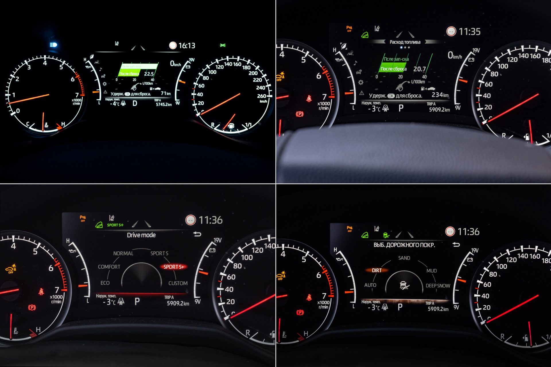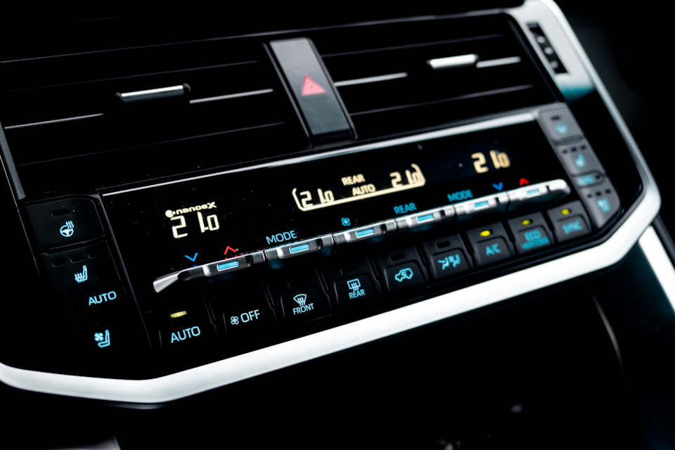 Бытовые наблюдения: датчик забортной температуры в пробках начинает завышать показатели. Отопитель мощнейший — в машине даже в -20 тепло, особенно, задним пассажирам, которые постоянно ставят себе температуру в 17-18 градусов, при установленных спереди 22. Тепло в LC300 сразу — спасибо электрическому “фену”.