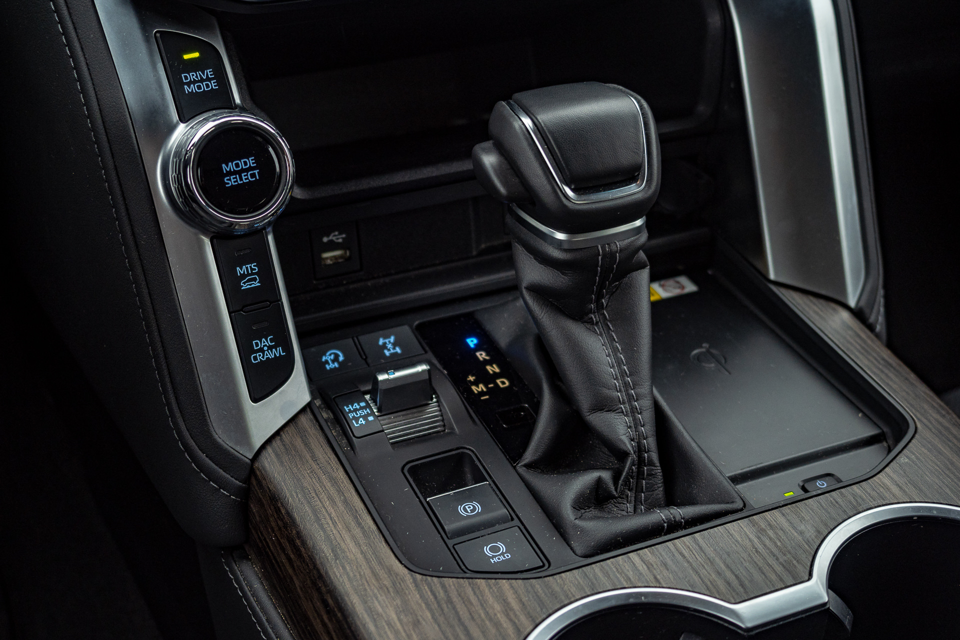 Для управления трансмиссией, вместо прежних “крутилок” на тоннеле, заведующих режимами полного привода, применяются кнопки внизу на центральной части передней панели. Там же расположены вертикальная шайба выбора подрежима движения, кнопки включения внедорожного режима MTS и внедорожного же “круиз-контроля” Crawl Control, совмещенного с системой помощи при спуске. Задавая скорость от 1.5 до 8 км/ч, можно “прокрасться” через опасное место достаточно эффективно. Скорость спуска регулируется в диапазоне от 4 до 30 км/ч.