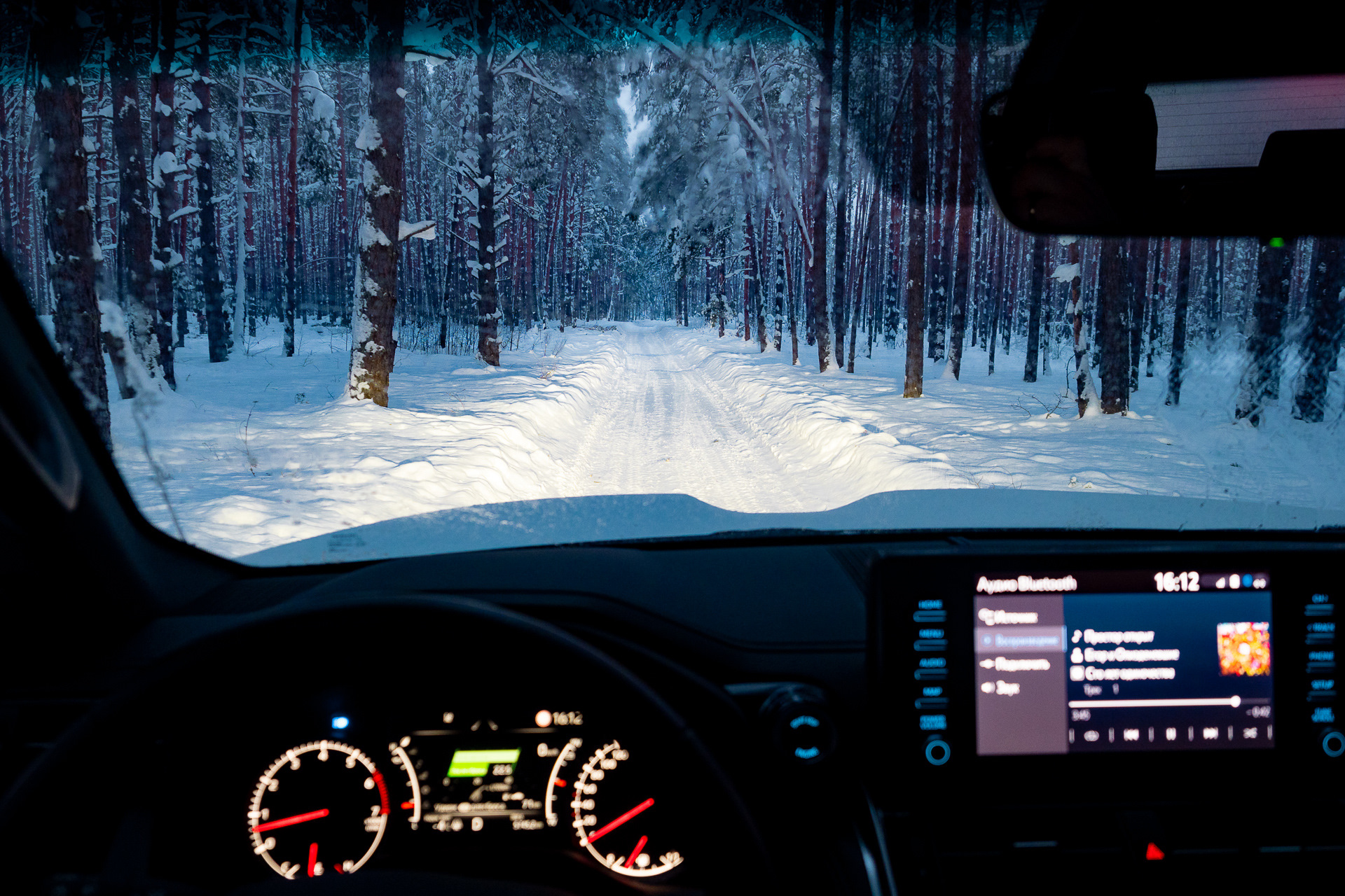 Дорога из Юрьева-Польского в сторону Лакинска извилистая, заснеженная. Стемнело, но это не мешало обгонам — на колеях под слоем снежной каши “крузак” стабилен, как на сухом асфальте. Периодически на пустых участках пробую тормозами зацеп шин.