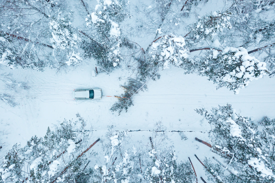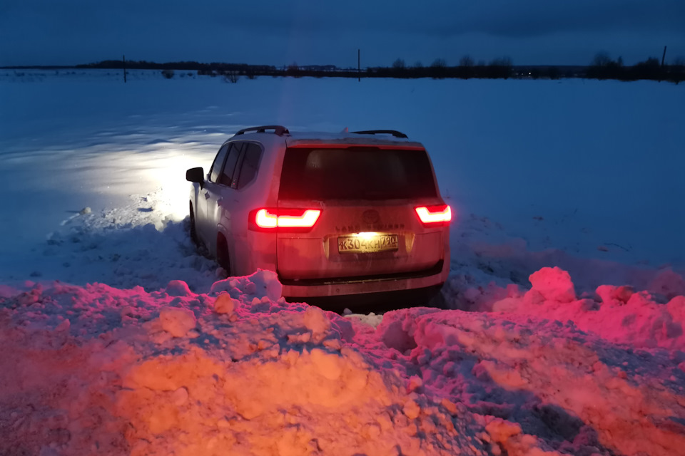 Быстро в соседней деревне был найден трактор; за это время я той же детской лопаткой раскопал пространство вокруг автомобиля, вычистил арки от снега, и руль стал поворачиваться. Композитная защита днища оказалась расцарапанной, но целой. Не смотря на то, что автомобиль висел на уплотненной его массой снежной подушке, колеса стояли на земле — ходы подвески огромные.