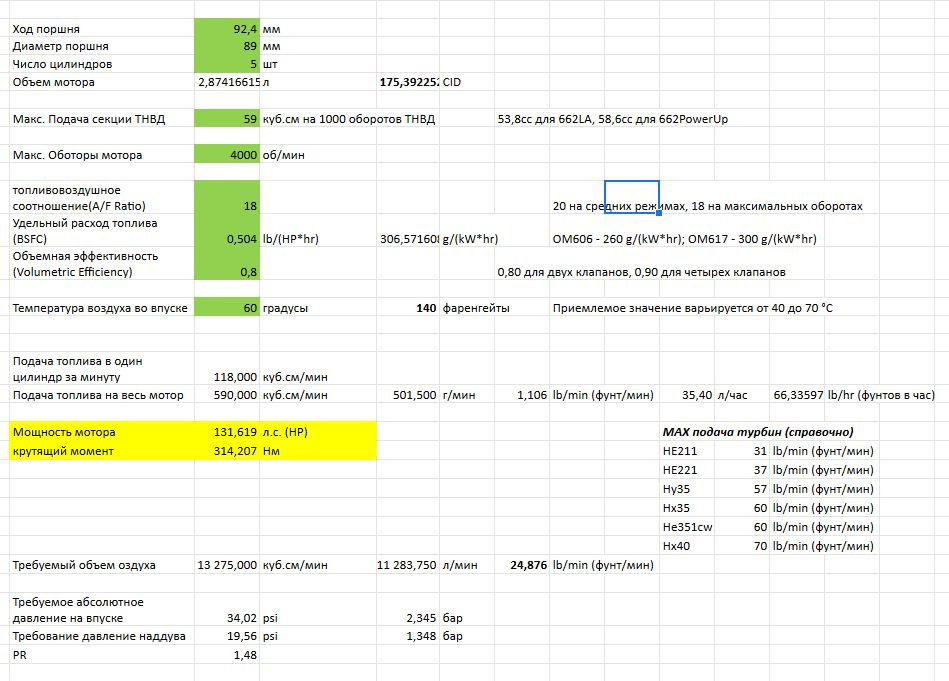 3. Желательно по манометру контролировать давление наддува. Как видно из расчета, давление более 1.3 бара лишнее.