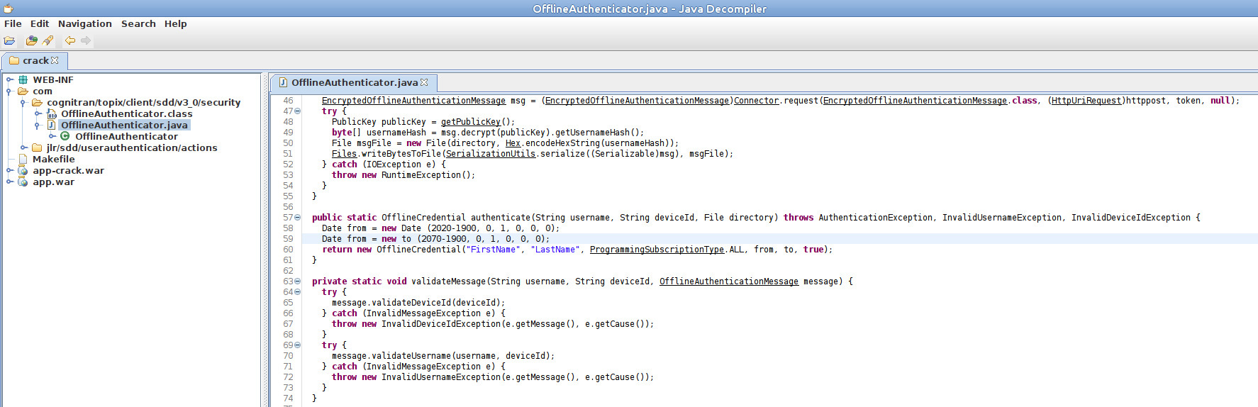 спасибо за подробное объяснение, однако я не смог найти файл Offlineauthenticator.java, который вы отредактировали. Можете ли вы дать мне идею?