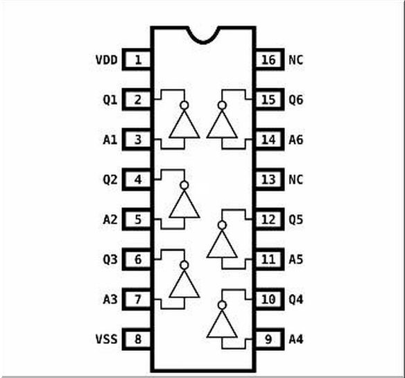 Микросхема CD4049 представляет из себя логику, которая содержит в своём составе 6 логических инверторов «не»,