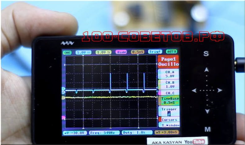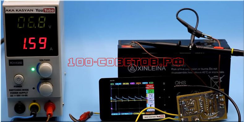 Осциллографом можно убедиться, что аккумулятор заряжается импульсами тока высокой частоты.