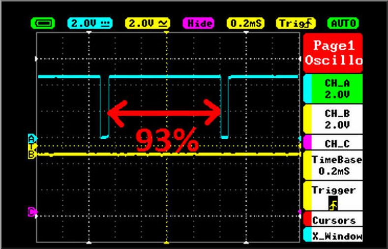 Но проблема заключается в том, что при подаче такого импульса на полевой транзистор он большую часть времени будет находиться в открытом состоянии и лишь 10% в закрытом, это приведёт к тому, что транзистор будет прокачивать слишком большой ток и как следствие мы получим сильный нагрев всех силовых элементов и большое потребление тока всей схемы в целом.