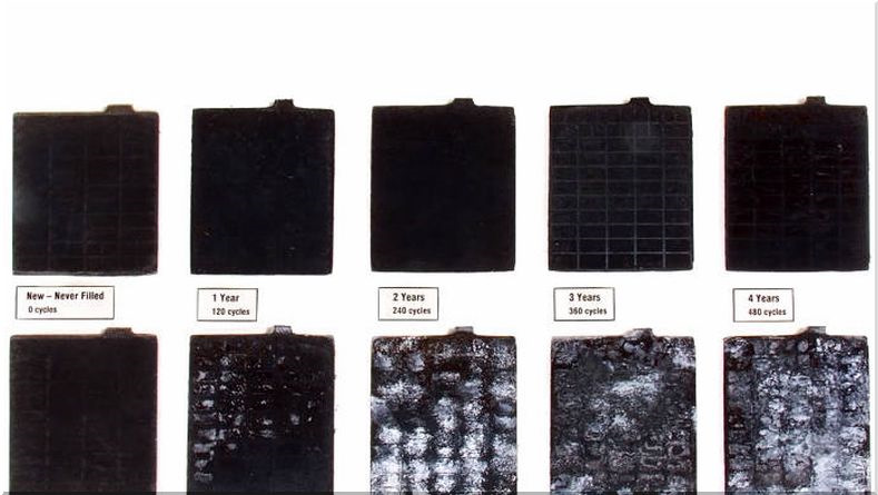 В ходе данной реакции образуются сульфаты, которыми со временем обрастают пластины, сульфаты препятствуют протеканию тока, так как являются плохим проводником и со временем аккумулятор теряет ёмкость и не способен отдавать большой ток для работы стартёра.