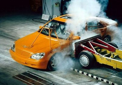 На рестайловых машинах дебютировала система Pre-Safe. Анализируя статистику, в Штутгарте пришли к выводу что столкновению или вылету с дороги предшествует потеря управления, экстренное торможение или резкий маневр . То есть перед аварией чаще всего срабатывает или ESP, и / или интегрированная в блок той же ESP система экстренного дотормаживания BAS. Теперь Mercedes S-класса будет воспринимать занос или экстренное торможение как сигнал для подготовки, при этом подушки не сработают . Но в катушку инерционного ремня теперь встроен мощный электродвигатель, который по команде от BAS при резком нажатии на педаль тормоза за 120 миллисекунд способен увеличить натяжение ремня до 120 кг(срабатывание же подушек безопасности и пиропатронов ремней происходит лишь по команде от блока SRS при экстремально высоком отрицательном ускорении ( столкновении с препятствием ) . Кроме того, передние кресла автоматически примут оптимальное положение, в котором ремни и подушки будут максимально эффективны . Кроме того, закрывается люк во избежание попадания посторонних предметов при опрокидывании да чтоб никто не выпал в него .