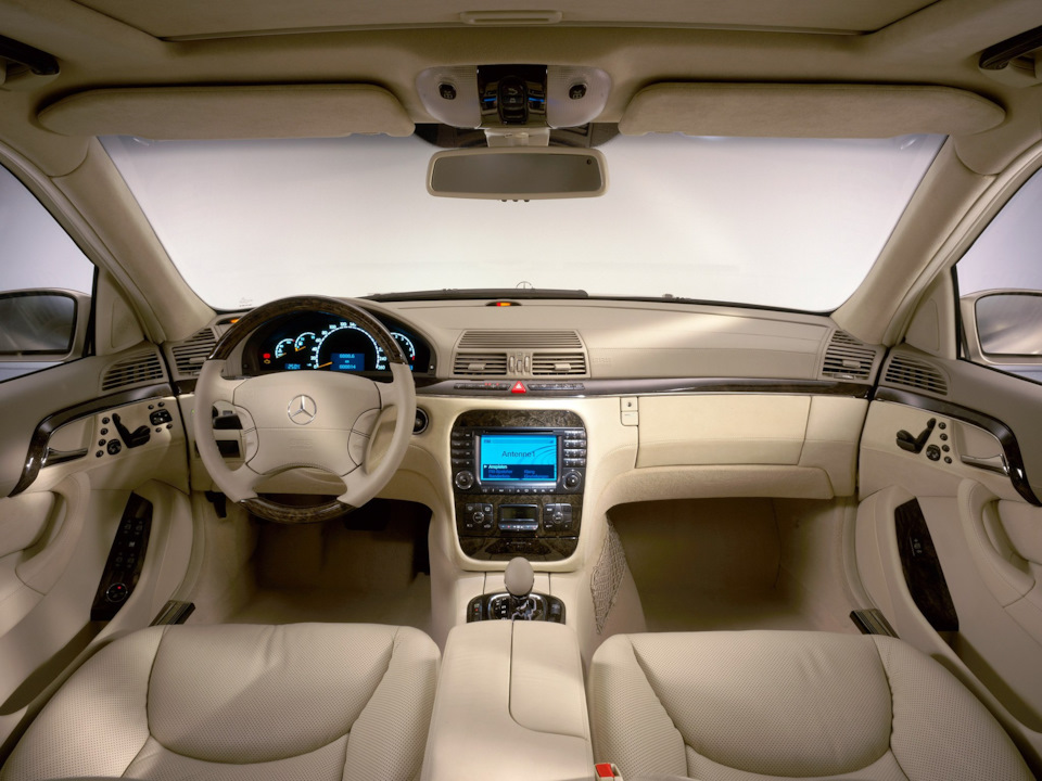 Несмотря на меньшие габариты, внутри W220 просторнее предшественника: салон длиннее на 17 мм, его ширина на уровне плеч увеличена на 65 мм, а высота от сиденья до потолка осталась неизменной.