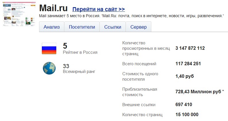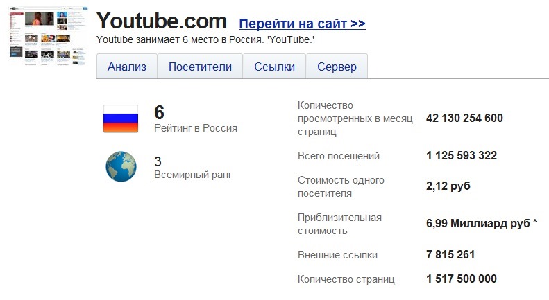 После чего меня посетила мысль составить топ 5 сайтов как всемирного рейтинга так и российского…и вот результат