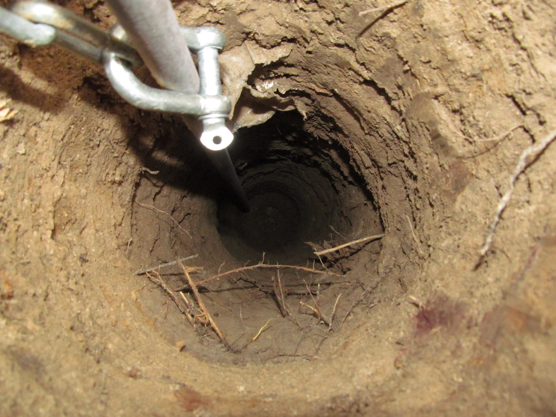 3 разных трубы 1,5 м, 3м и 5 м 25 мм, при помощи кувалды забивались вдвоем по 15-20 см, с периодическим вытаскиванием и очисткой от грунта, который оказывался в трубе. Итогом оказалось отверстие в земле на глубину 4,8м. Вставил в это отверстие 4*1,5 м штыря из нержавейки, перфоратором забил остаток. вдвоем потрачено 2 часа.