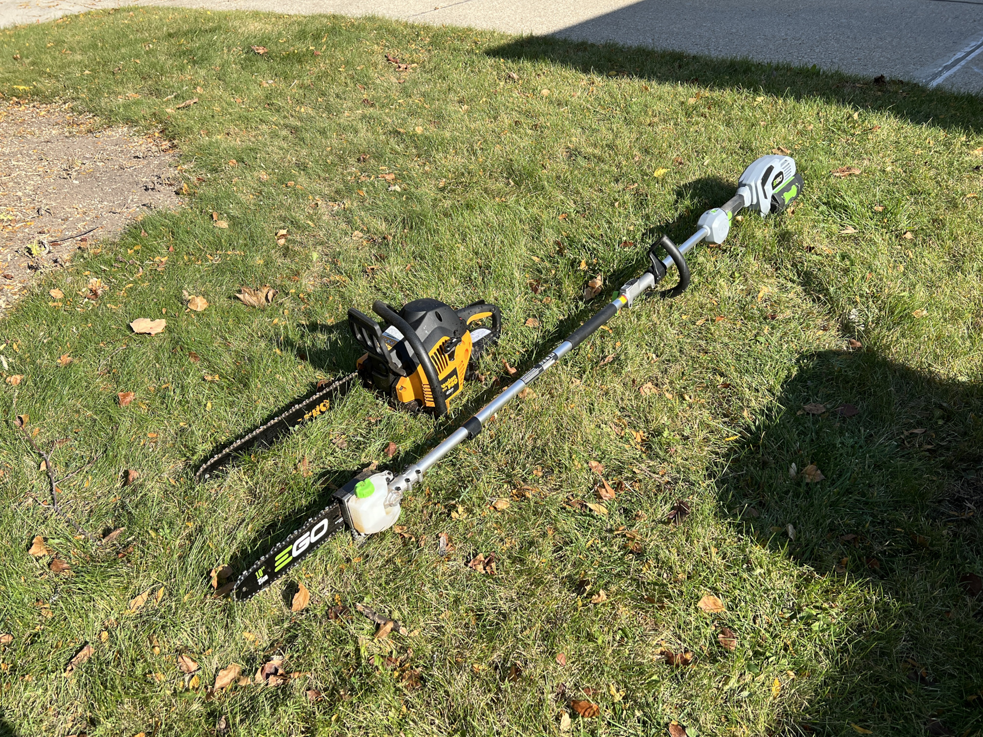 Почему одно дерево вы сами, а другое надо специалистов вызывать? Из-за высоты?