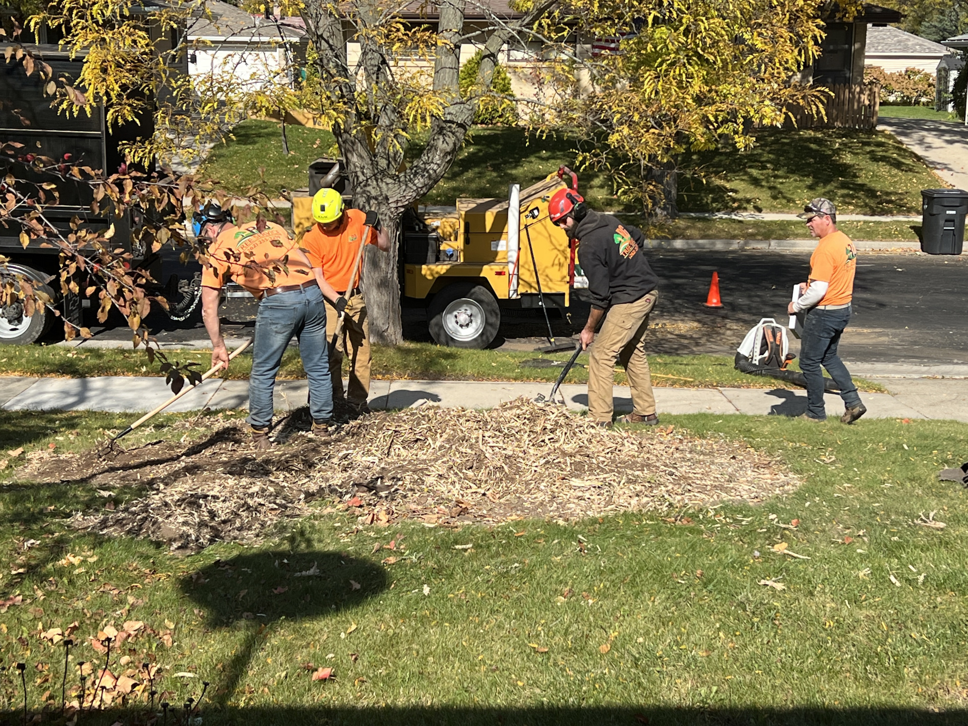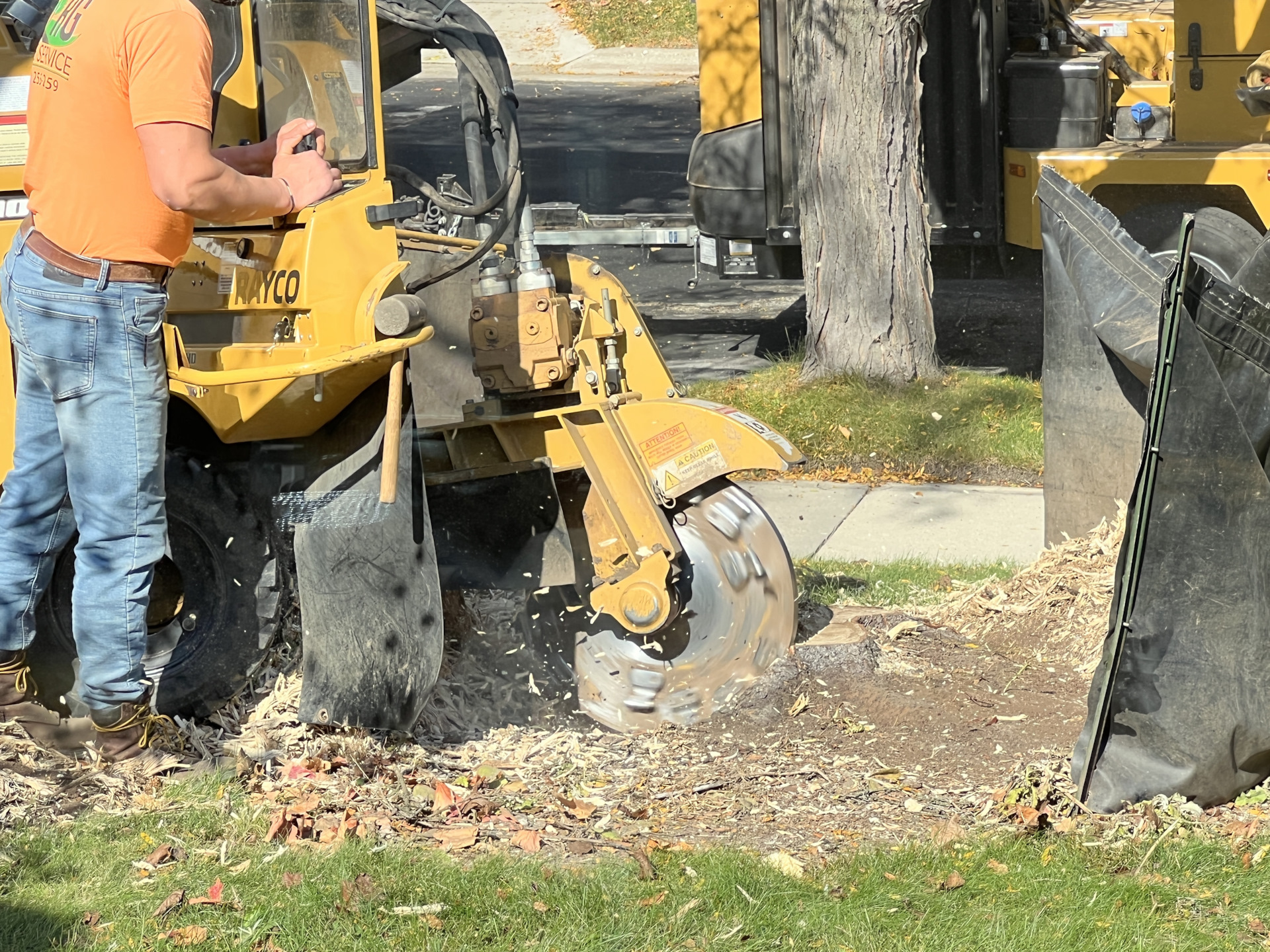 4. Тем временем, ветки спилены и тут же перемалываются в щепки.