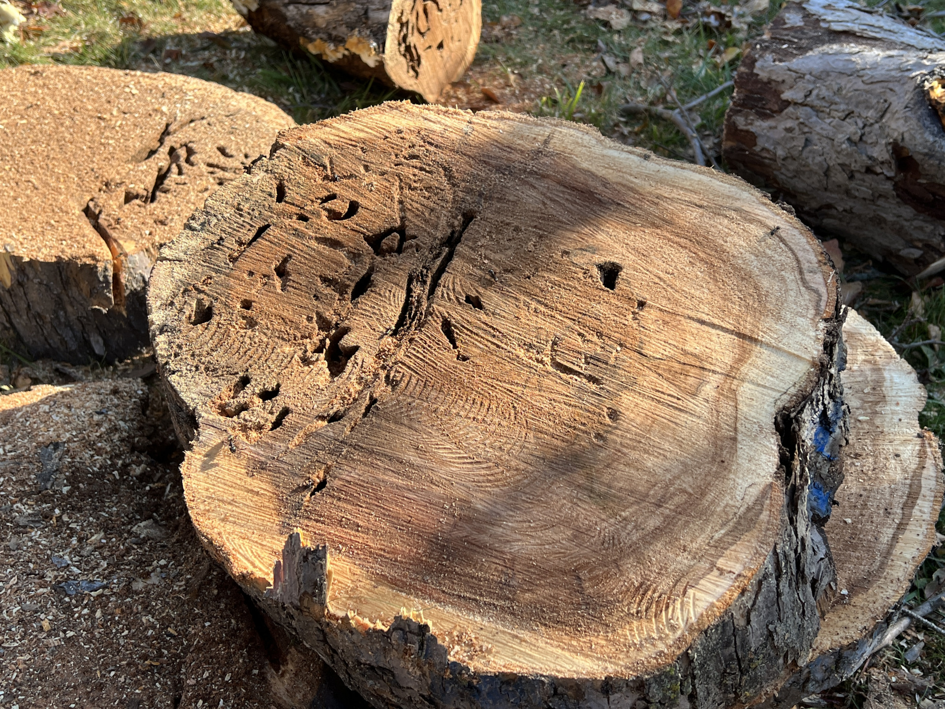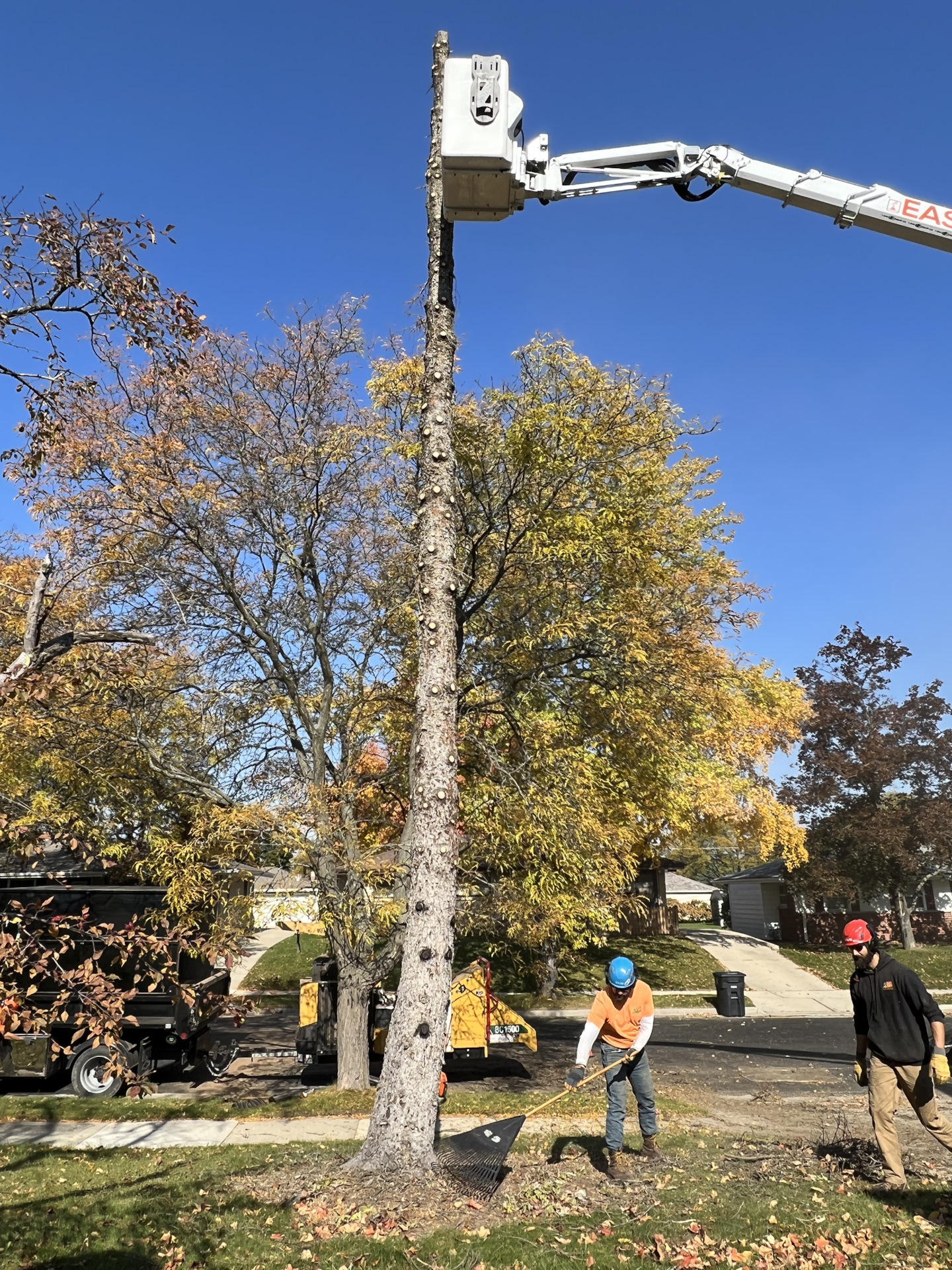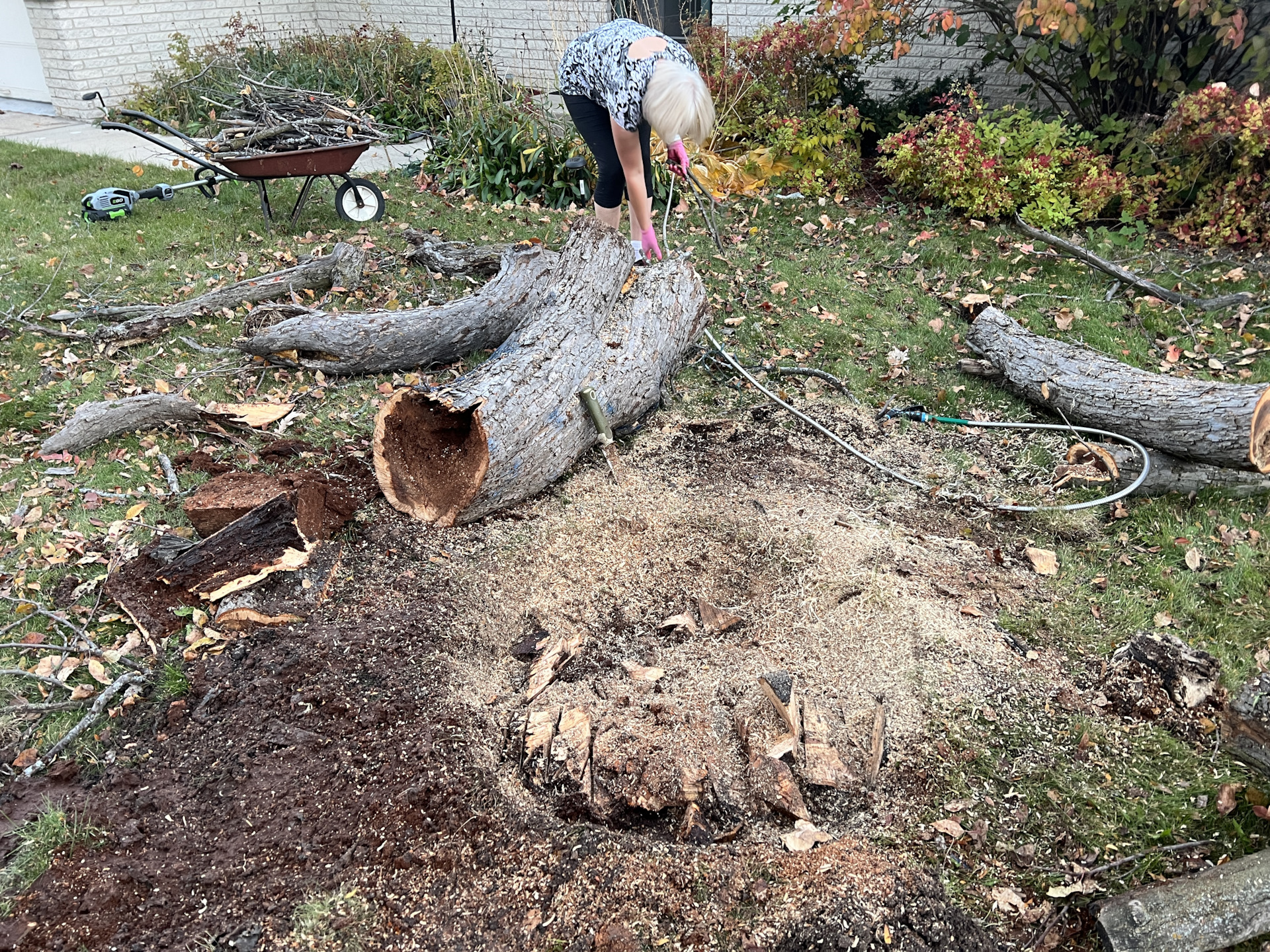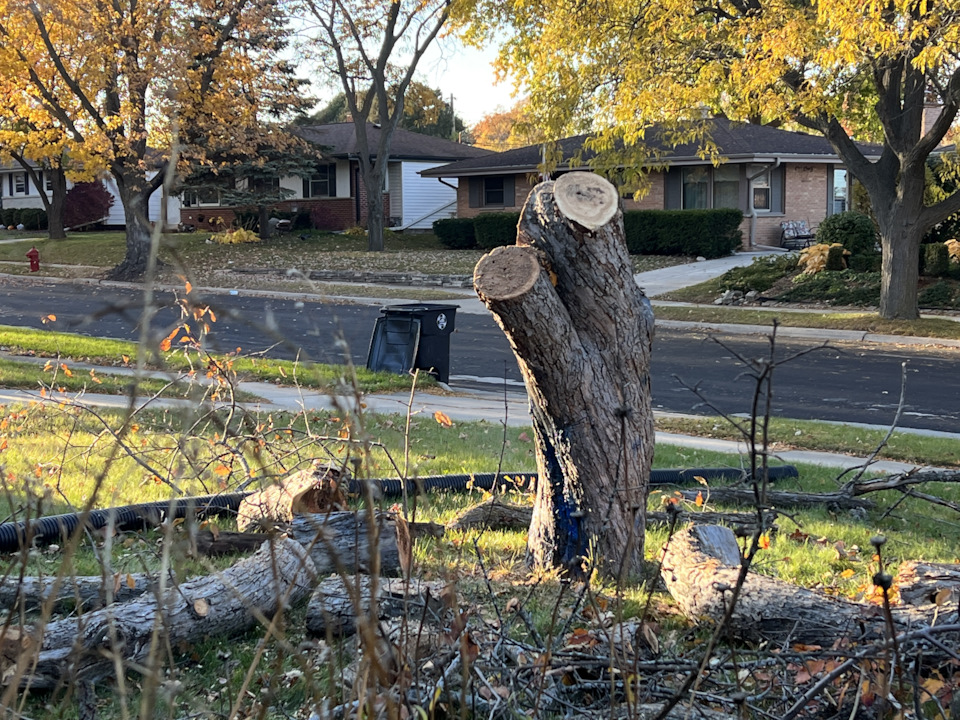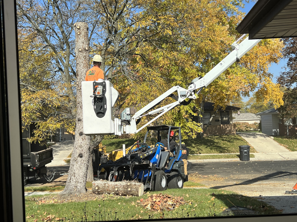1. Это не наше дерево. Это в парке. Мы второй раз заказываем спилить дерево. Первый раз это был клён, в этот раз ель. Оба раза мы заплатили 1000 долларов за каждое дерево. Ну вот это на фото, думаю, будет 4-5 тысяч.