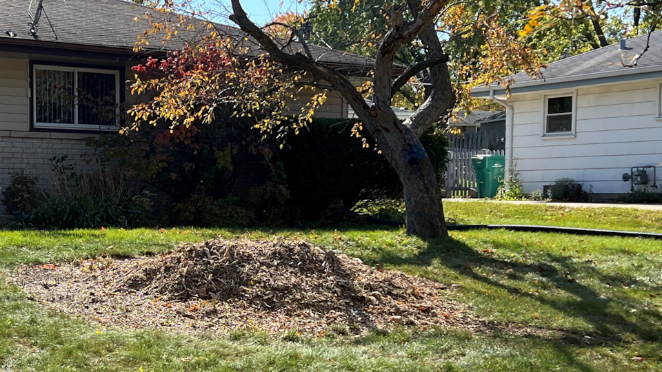 9. Кучка от ёлки и старая дикая яблоня тоже под снос. Уже своими силами.