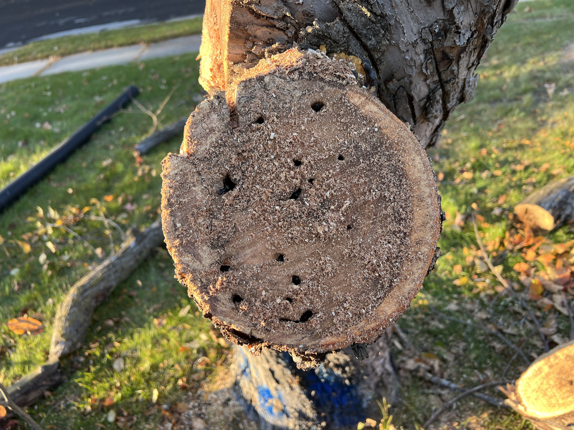 Так грызут всЁ! Здесь дупло на 12-ё фото. А одну зиму в хозяйственном домике прогрызли крышу, перегрызли все коробки картонные, верёвку для садовых ножниц и даже… пластиковый бензобак пилы! Я ж всю зиму не захожу туда, весной открыл и … потерял сознание.
