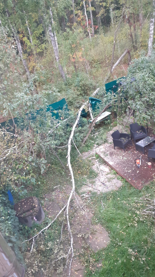 У нас на даче упала береза, благо момент падения мы видели из машины приехав!