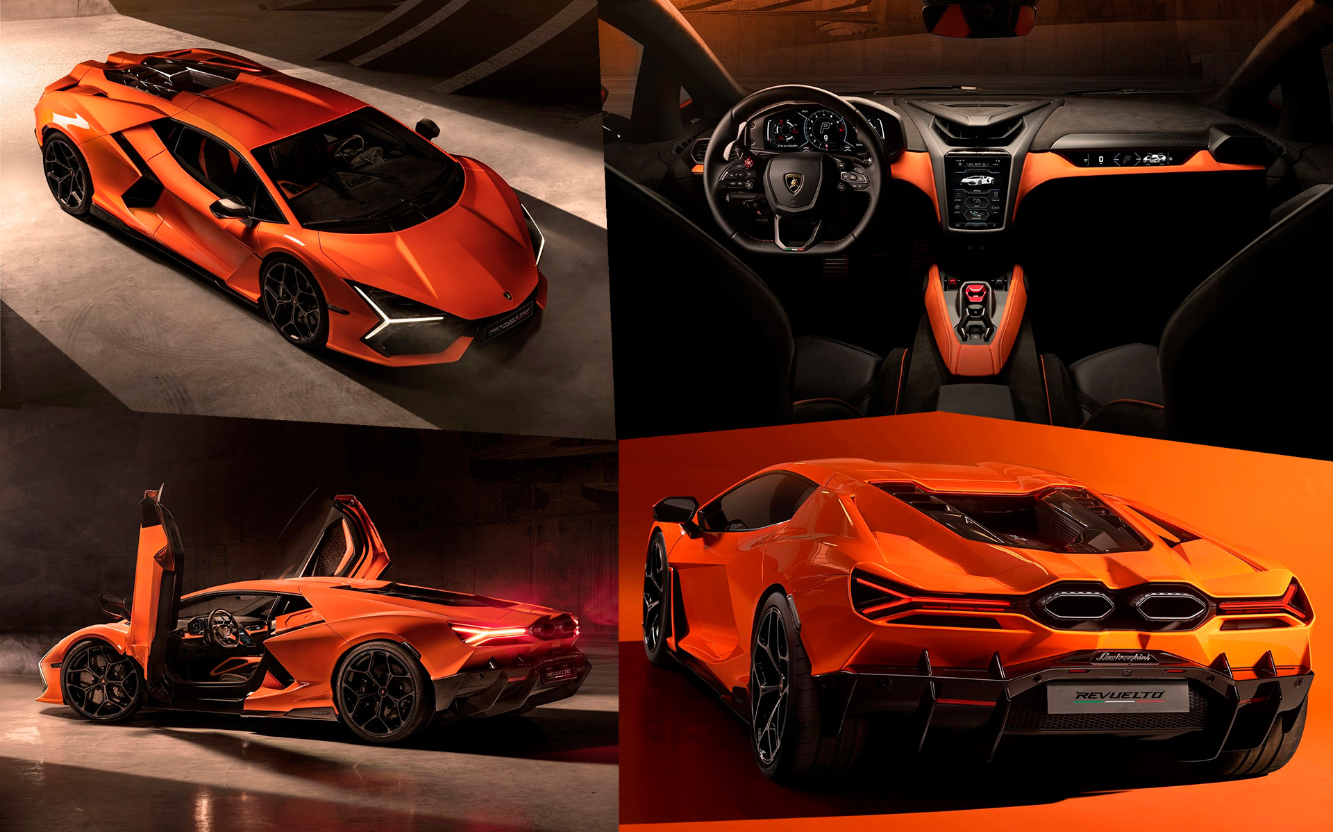 В 2023 году представлен наследник Авентадора — гибрид Revuelto, сочетающий 825-сильный атмосферник V12 с тремя электромоторами. Комбинированная отдача силовой установки достигает 1015 л.с. Причём в основе трансмиссии теперь преселективный восьмиступенчатый «робот» с двумя сцеплениями, расположенный поперёк, передние колёса приводятся исключительно электричеством, а двигатель ради новой компоновки пришлось развернуть задом наперёд. Коленвалу позволено набирать до 9500 об/мин.