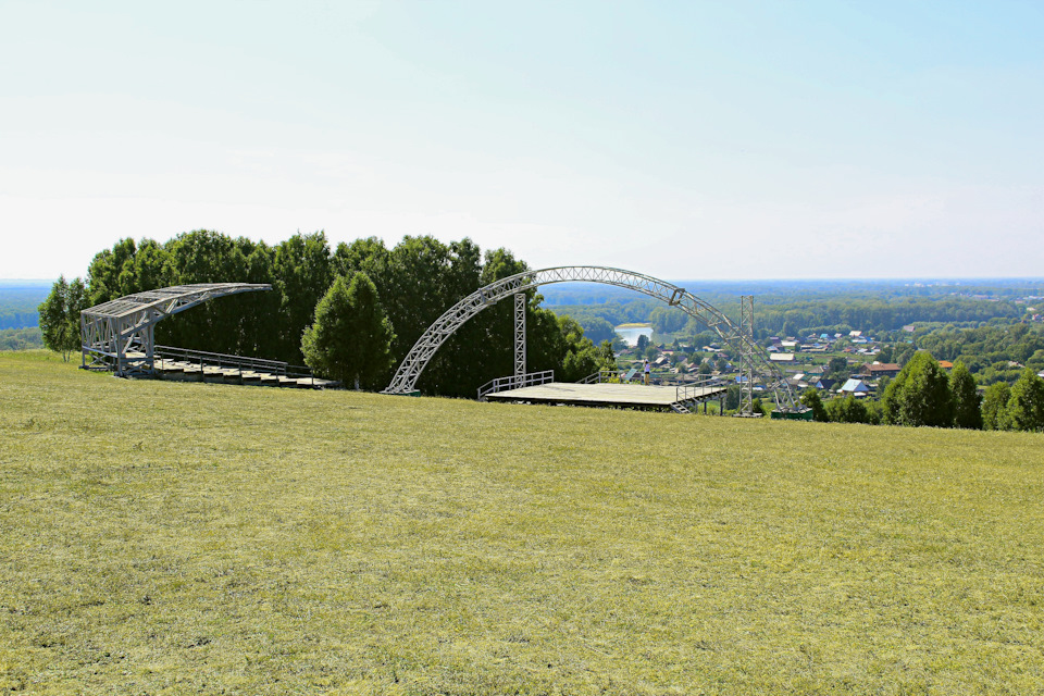 Сцена для "Шукшинских чтений" на горе "Пикет". И вообще Алтайский край щедр на самородков: Шукшин — Сростки; Евдокимов — Верх-Обское; Золотухин — Быстрый Исток; Калашников — Курья…