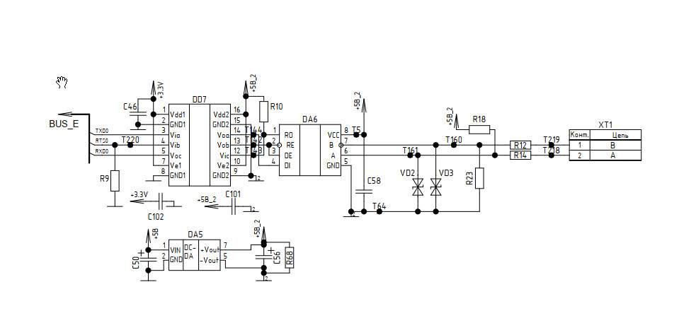 :) С каких пор:)? У меня ПЛК150-ый, на тестовом стенде, старенький. Было дело, сжег ему rs485 китайским вольтметром, попросил в поддержке схему, прикрепляю. Может я чего-то не понимаю, просто своё радиоконструкторское образование не практикую, как там может быть 120 Вольт в интерфейсе? Какой фиксик их туда заносит?