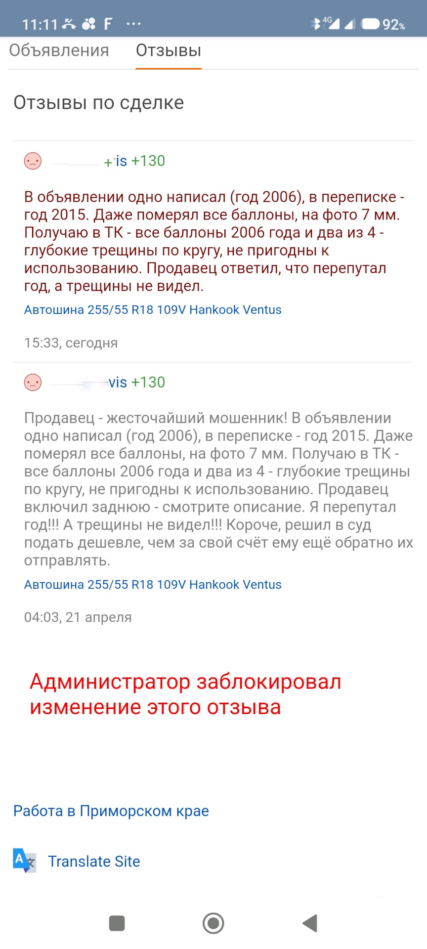 История в картинках. Ничего лишнего. На сайте drom решил купить летнюю резину на фрил и что из этого получилось.