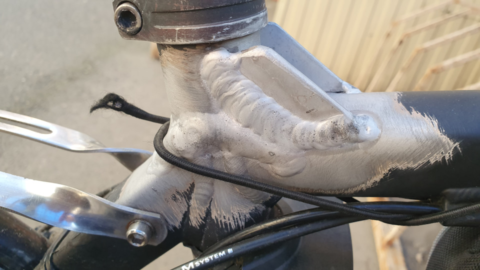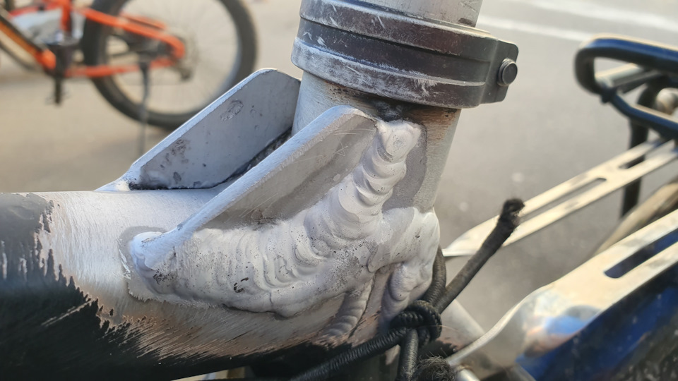 В декабре 2023 варил раму, подседельная труба снова лопнула выше верхней трубы. Нынче добавили усиливающие косынки.