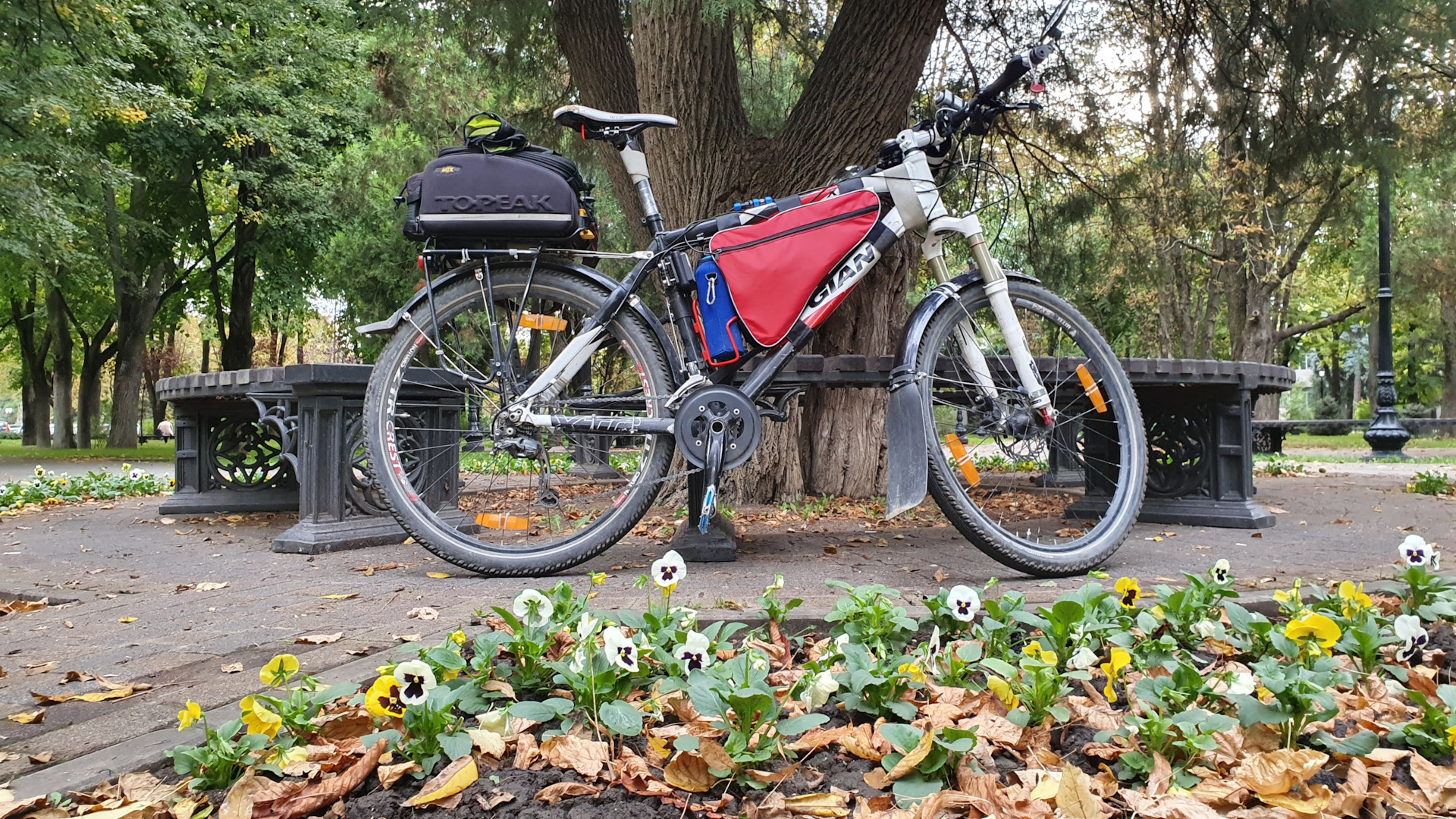 Велобагажник задний Topeak Uni Super Tourist (Non-Disc) TA2048-B. Так как отверстия на раме под багажник не предусмотрены, взял с регулируемыми ножками. Справа закрепил на болт тормозной скобы, слева на болт крыла.