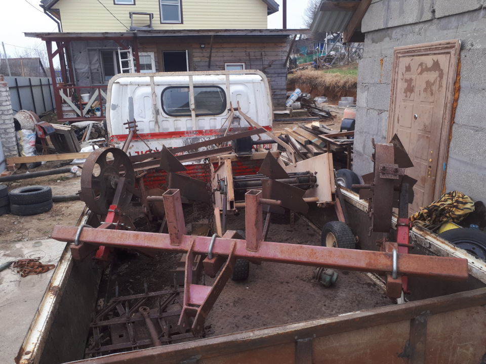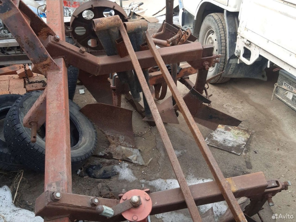 Фото с Авито.Фото с Авито.Трёхкорпусной плуг и культиватор — окучник.Картофелекопалка.Прицеп.Погружены и едут домой.