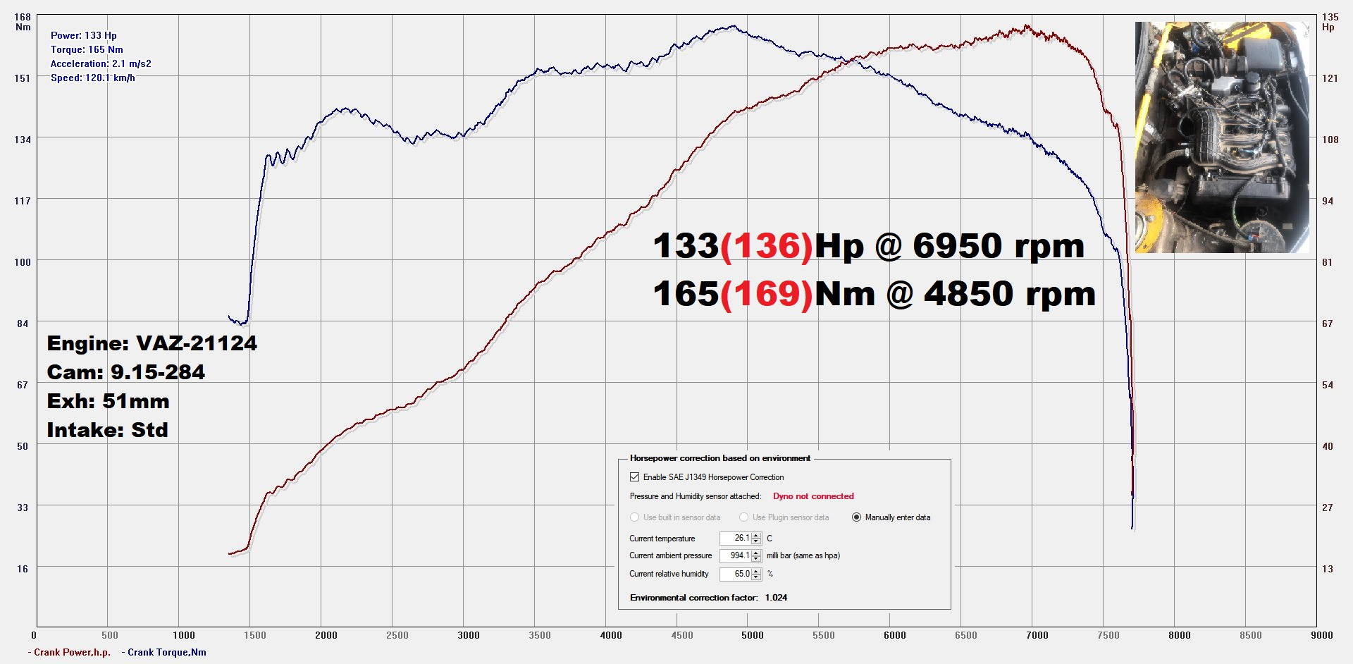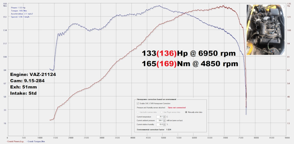 Результат на фото. Конфигурация впуска и выпускного коллектора "душат" возможности распредвалов.