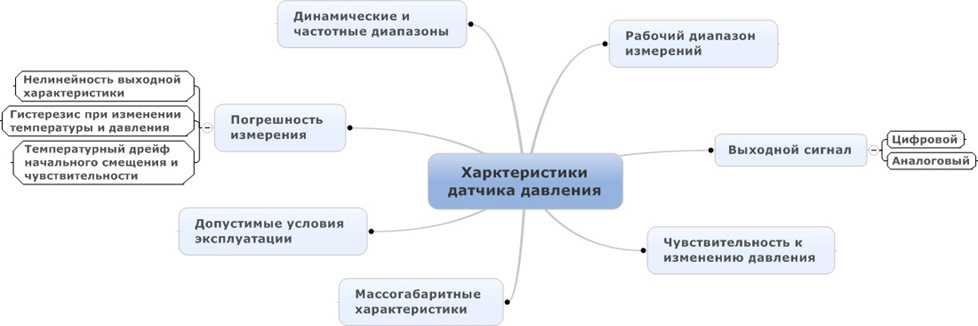 К важнейшим техническим характеристикам микродатчиков давления относятся рабочий диапазон измерения, чувствительность к измеряемому давлению, выходное напряжение [3].