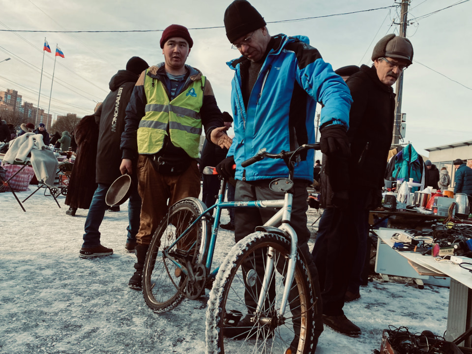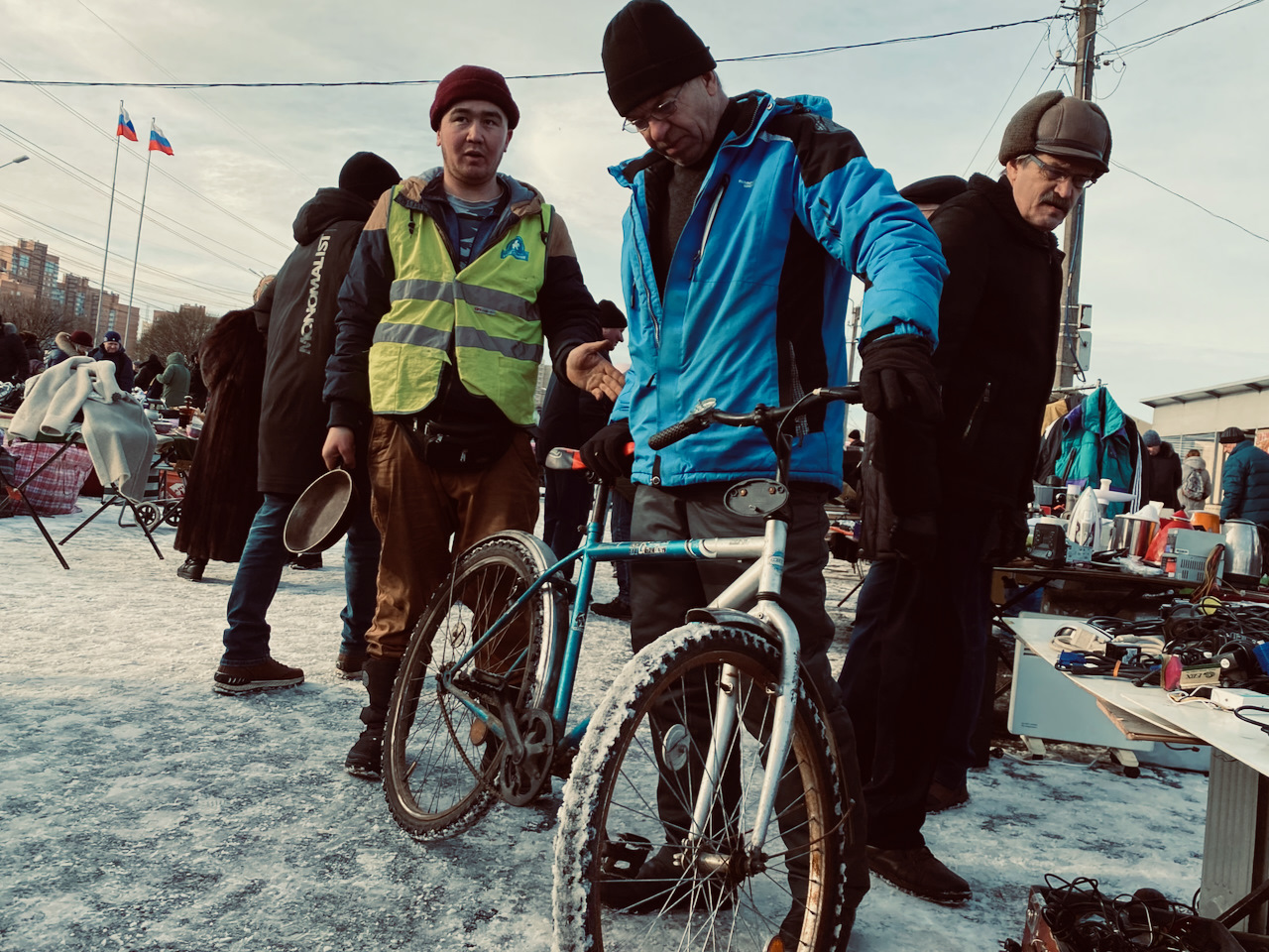 Тут сделка с двухколесным транспортом уже совершилась. Но, кажется, остались недовольные. Вон тот парниша в жилетке со сковородой явно что-то замышляет.
