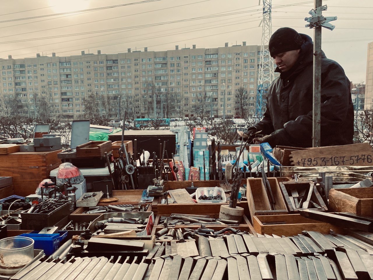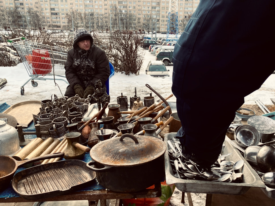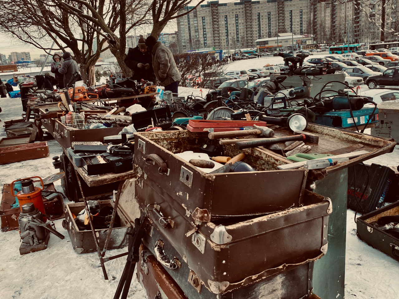 Южная Питерская барахолка не столь богата как северная. Но если встать в выходной день пораньше и наплевав на мороз поехать на рынок — на Юноне можно найти много интересного. И вещей, и людей.