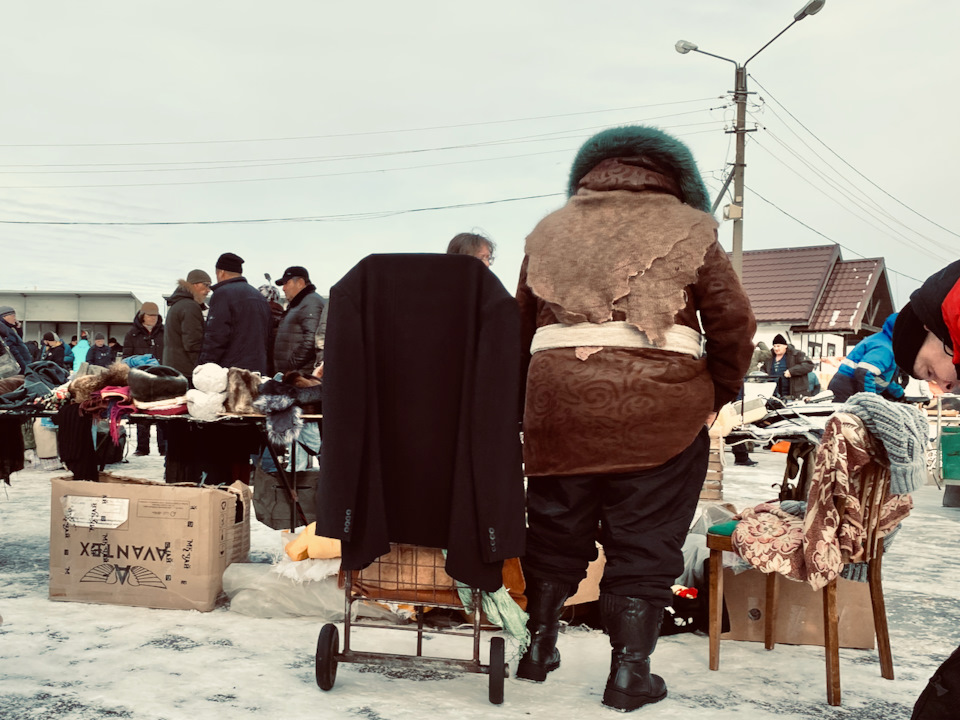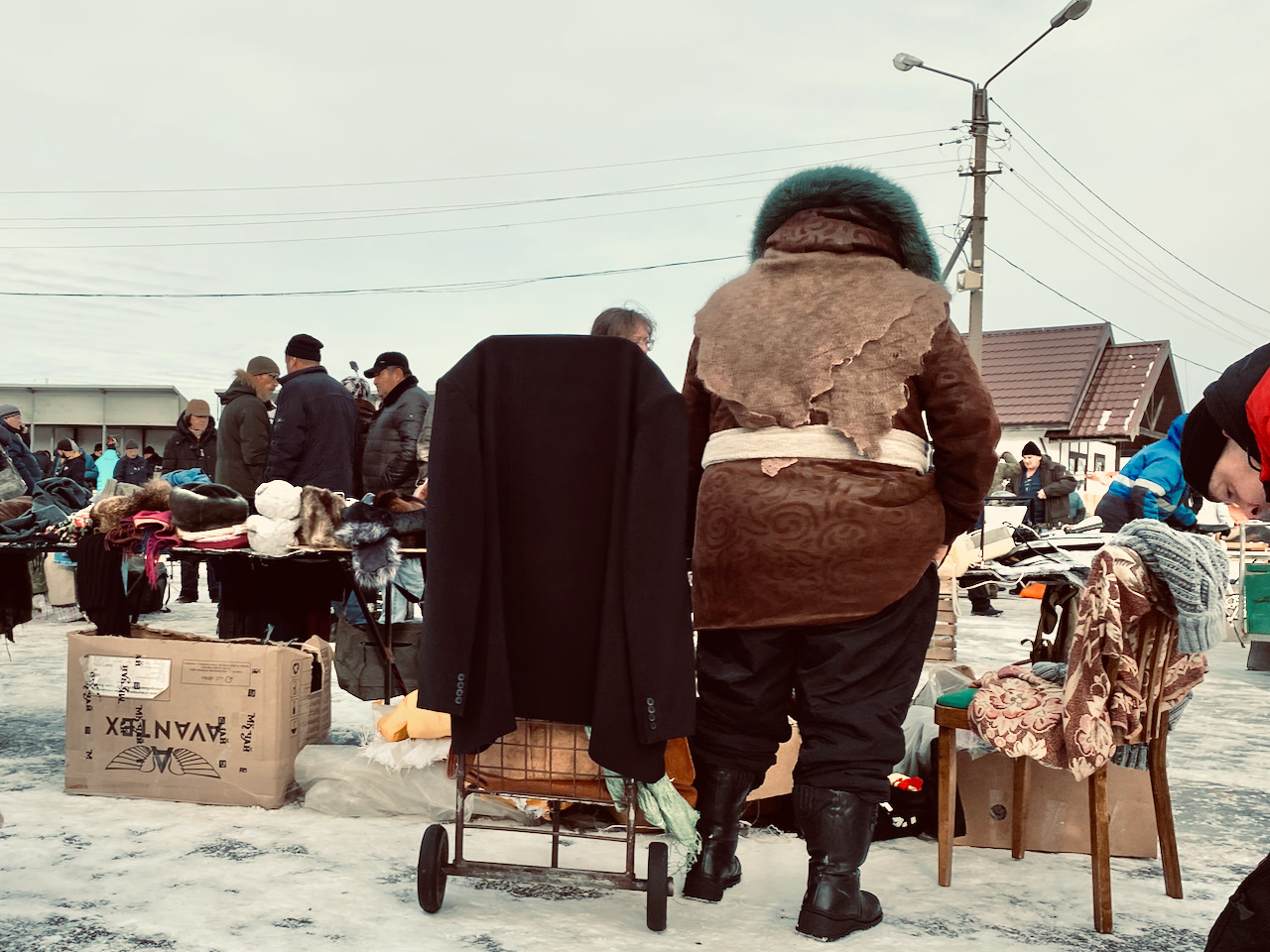 Хотя, говорят, что на рынок нужно приезжать ранним утром, но зимой вся движуха начинается часов с 11. Народ подходит все новый. Кто с тележками, кто с велосипедами.