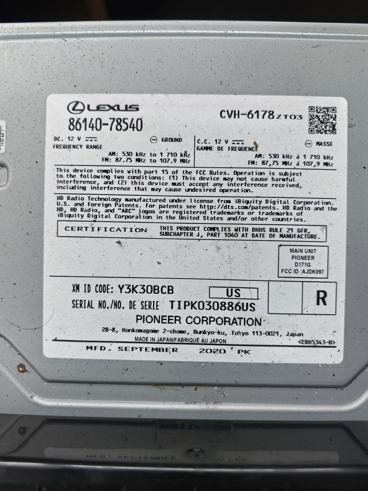 LEXUS NX 2017-2021гг Pioneer 86140-78540_ и 86140-78260 без навигации