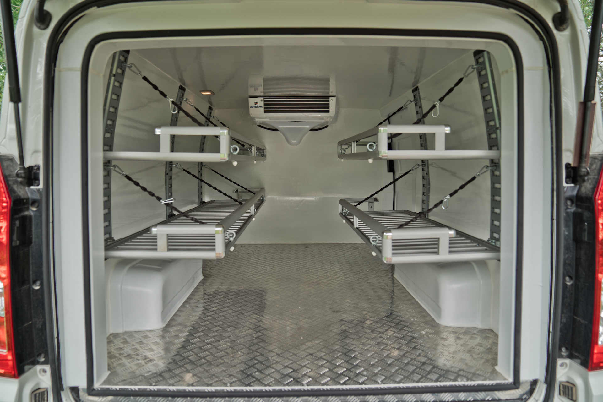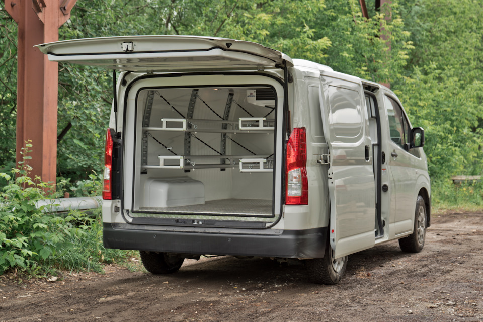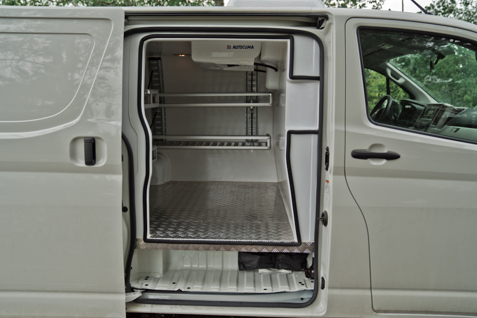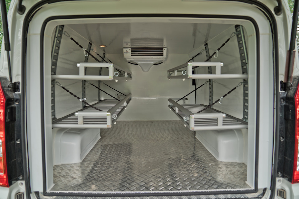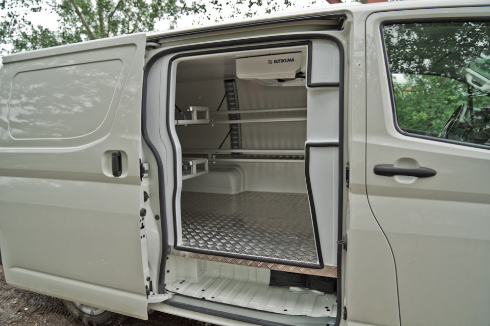 Что мы сделали с данным автомобилем? А, собственно, как всегда мы сделали отличную термоизоляцию и поставили холодильный агрегат. На первый взгляд все просто. Но если вникнуть в данный вопрос поглубже, то станет понятно насколько большой объем работы был сделан. Наши инженеры разработали с нуля весь комплект деталей изотермичности: накладки на двери, колесные арки, дверные порталы для второго контура уплотнений и сами сендвич-панели. В результате получили качественный герметичный кузов, который хорошо держит температуру. В качестве утеплителя мы используем экструдированный пенополистирол, внешняя отделка — листовой стеклопластик. Все это склеивается на пресс-вакуумном столе, потом обрабатывается на ЧПУ станке и на выходе мы имеем изотермическую панель по форме кузова автомобиля. Накладки на двери и арки изготавливаются нами из АБС пластика и заполняются ППУ. В качестве напольного покрытия был выбран рифленый алюминий.