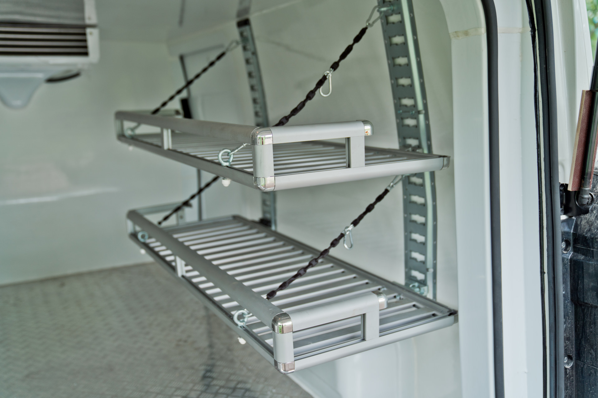 Так же мы изготовили специальные складные полки из алюминиевого профиля.