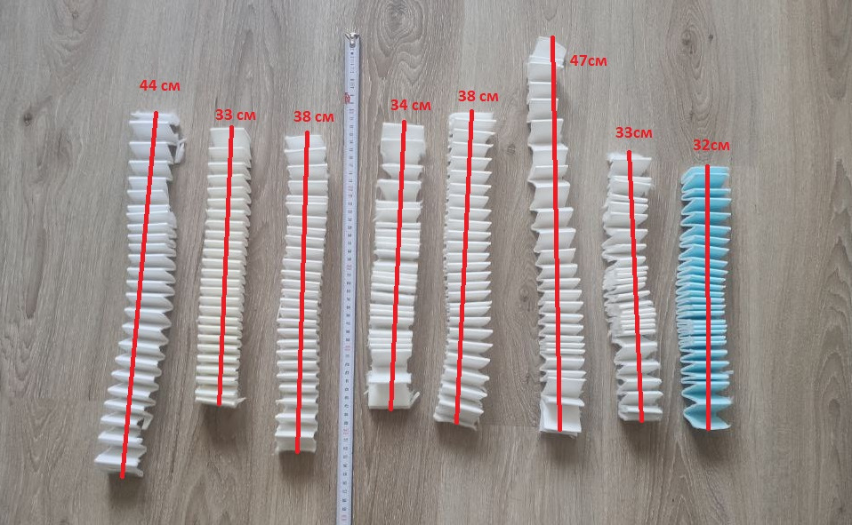 При сжатии — длина у всех +/- одинаковая, ну может в диапазоне 1см, то распрямились по-разному: