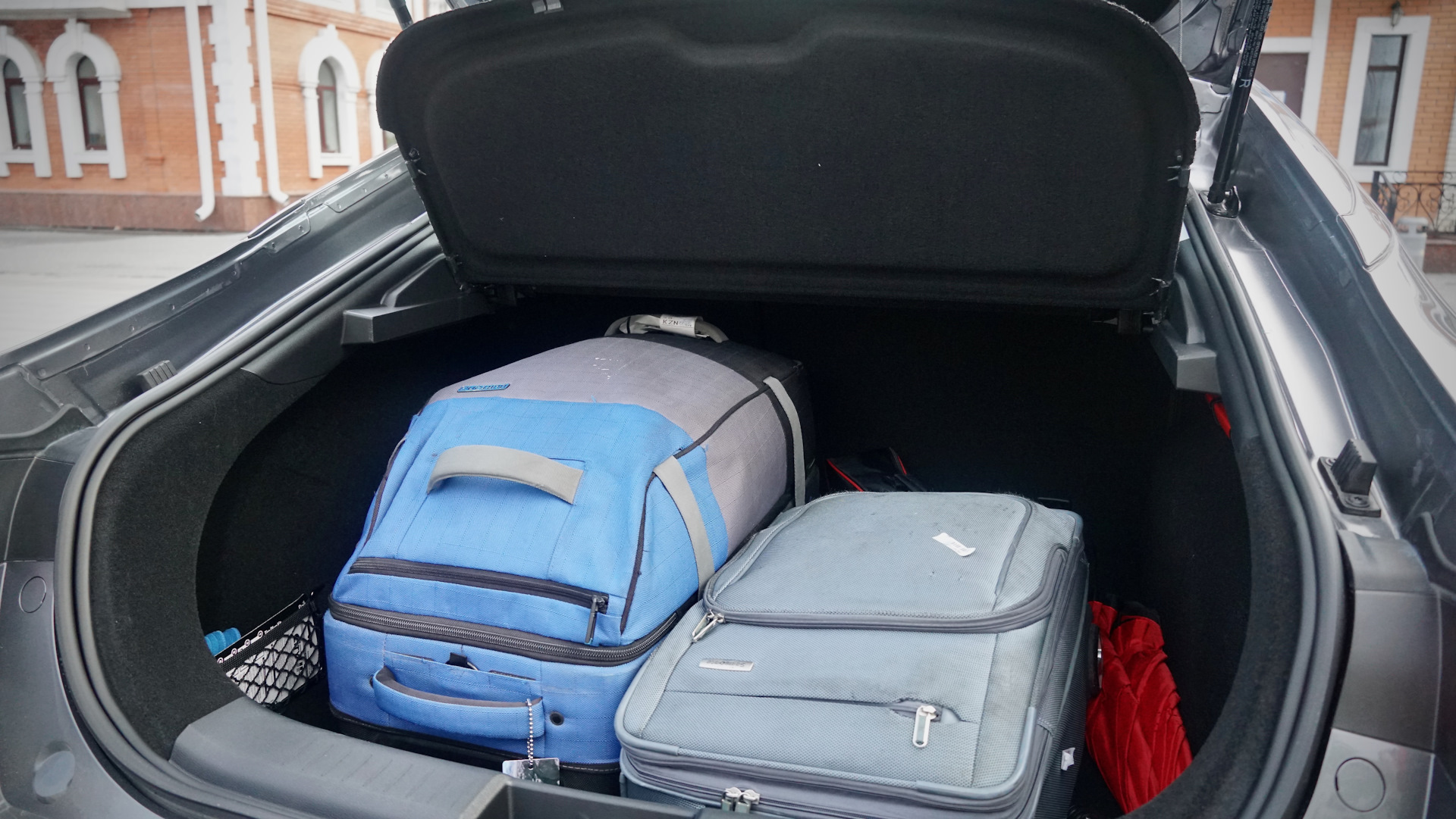 В реальных условиях — вот так. Два крупных чемодана помещаются под полку. Это зачёт.
