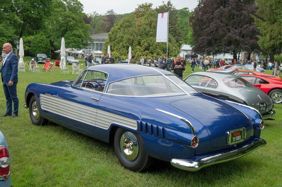 С такой внешностью этот Cadillac Series 62 вполне можно было бы принять за Alfa Romeo — если бы не его исполинские размеры: длина превышает пять метров. В 1953 году ателье Ghia заказало в США два серийных шасси с верхневальным мотором V8 5.4 мощностью 160 л.с. У дизайнеров Феличе Боано и Луиджи Сегре получился образ не только стремительный, но и очень узнаваемый: с характерными деталями вроде протянутых через весь борт «струн» или громадного заднего стекла — панорамного, разделённого надвое вертикальной перемычкой.