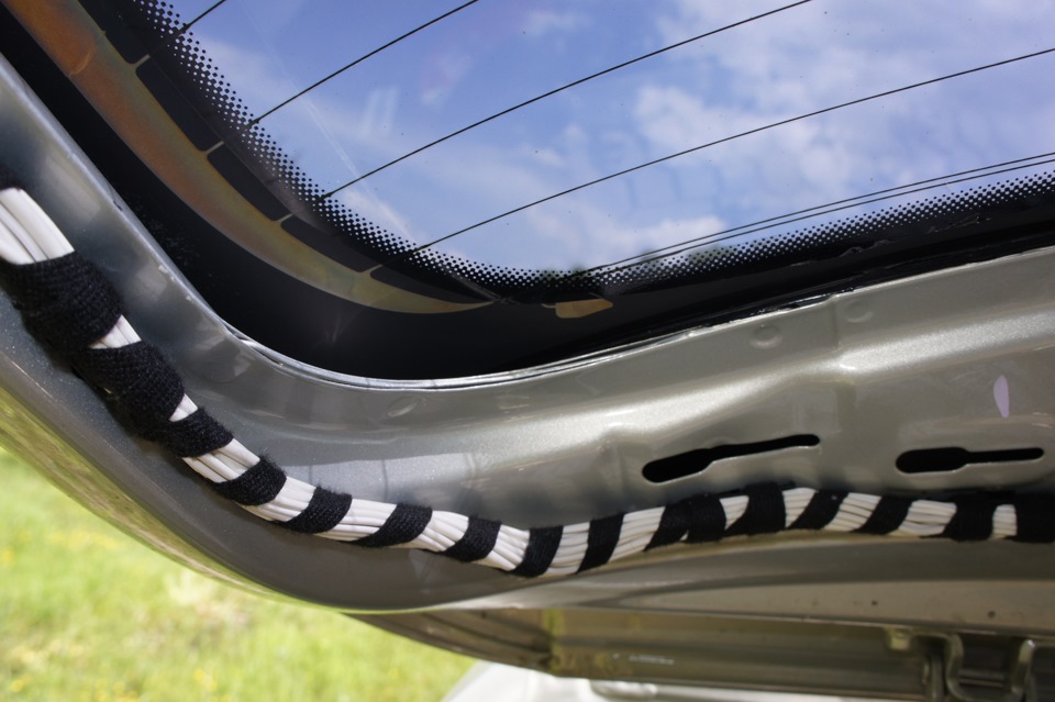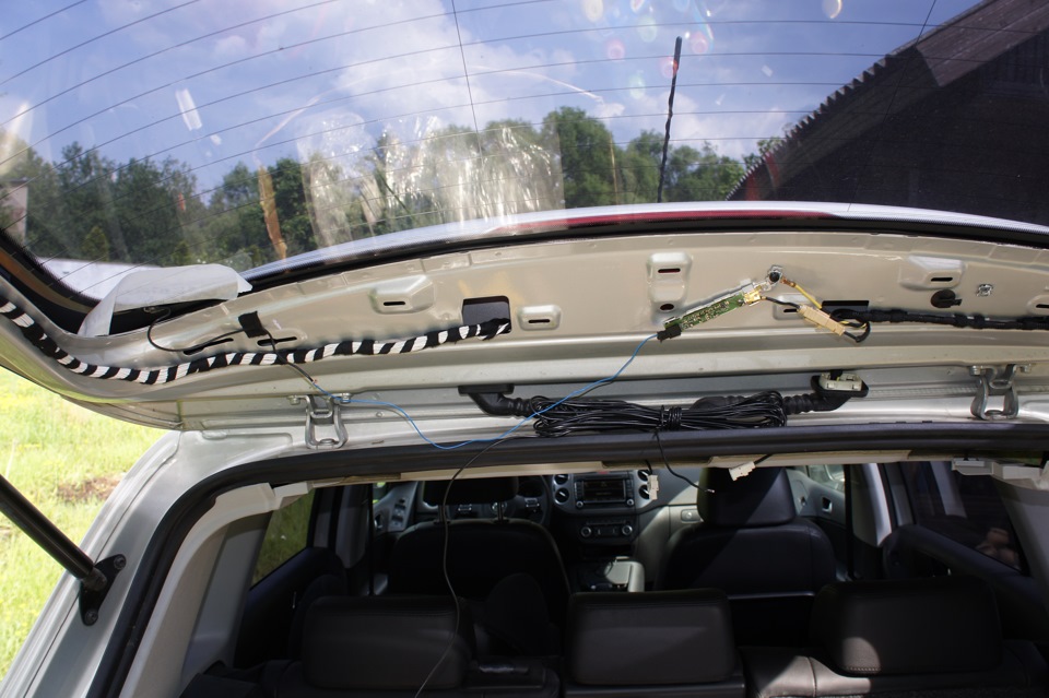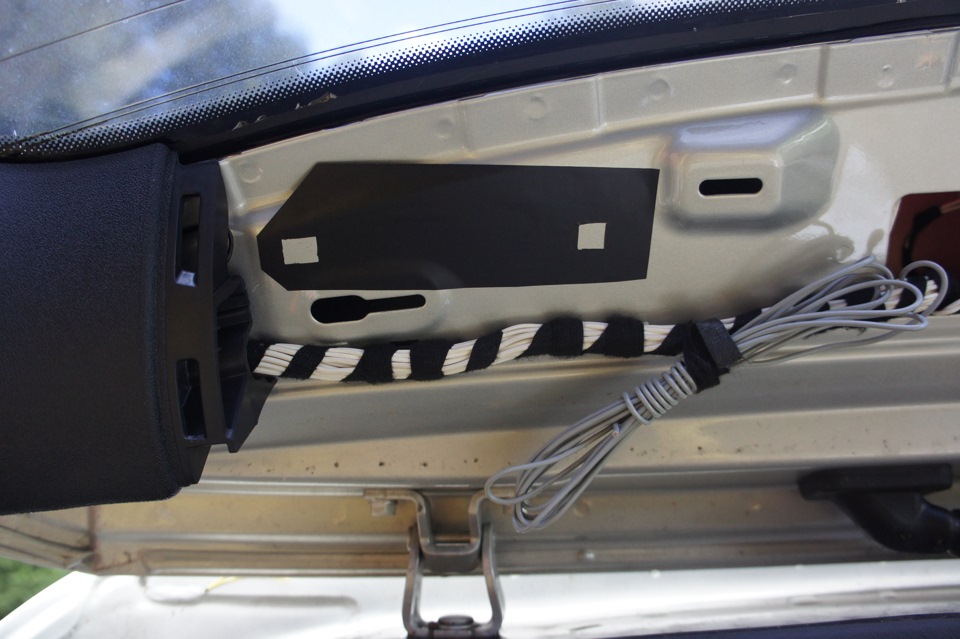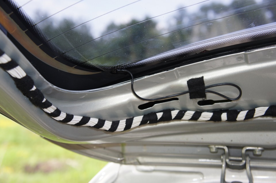 Нужно проделать два отверстия в крышке багажника для крепления антенного усилителя и еще два для крепления антенного кабеля. Ну и нужно протянуть антенный кабель в составе правого жгута или установить новый правый жгут проводов.