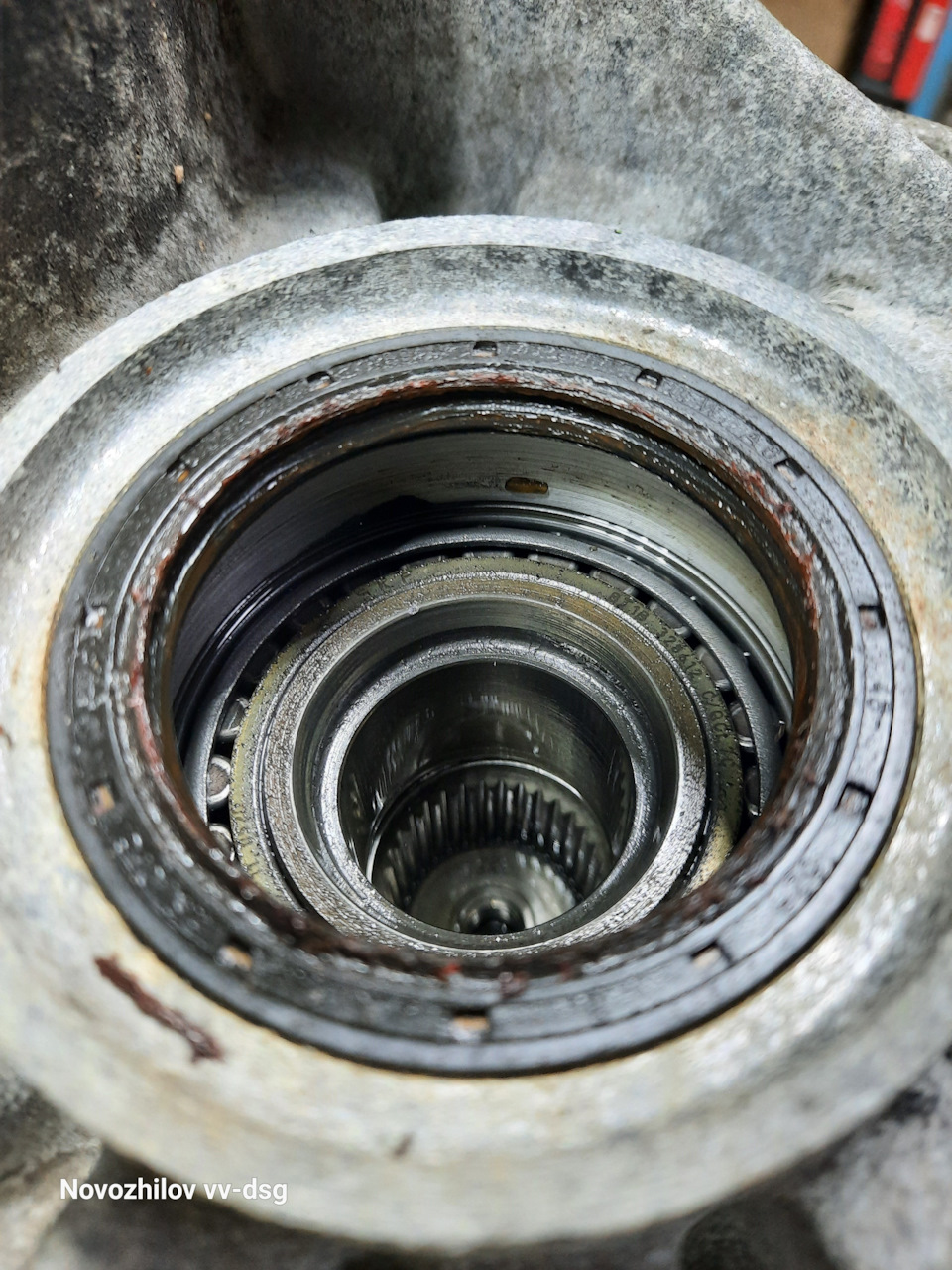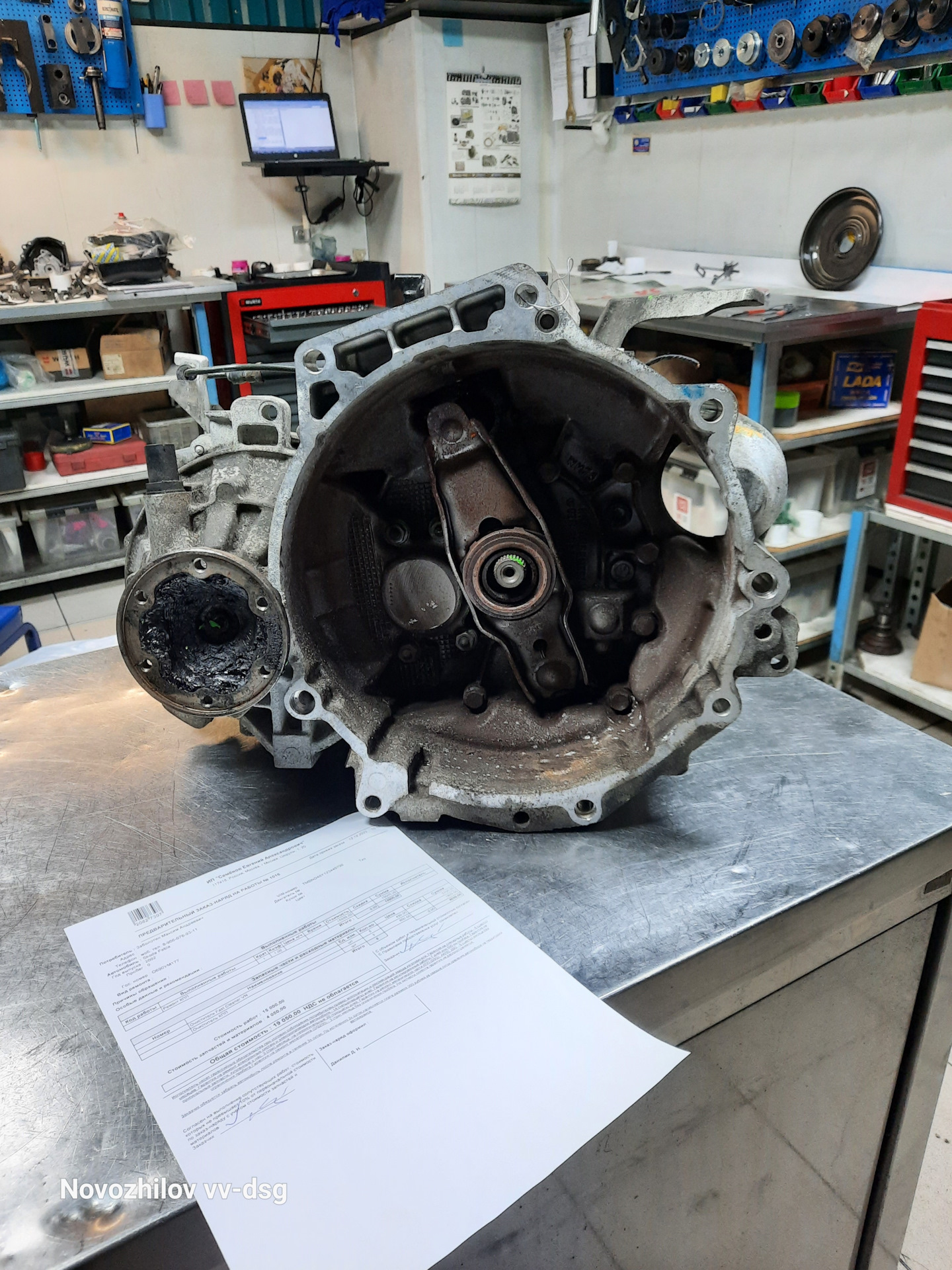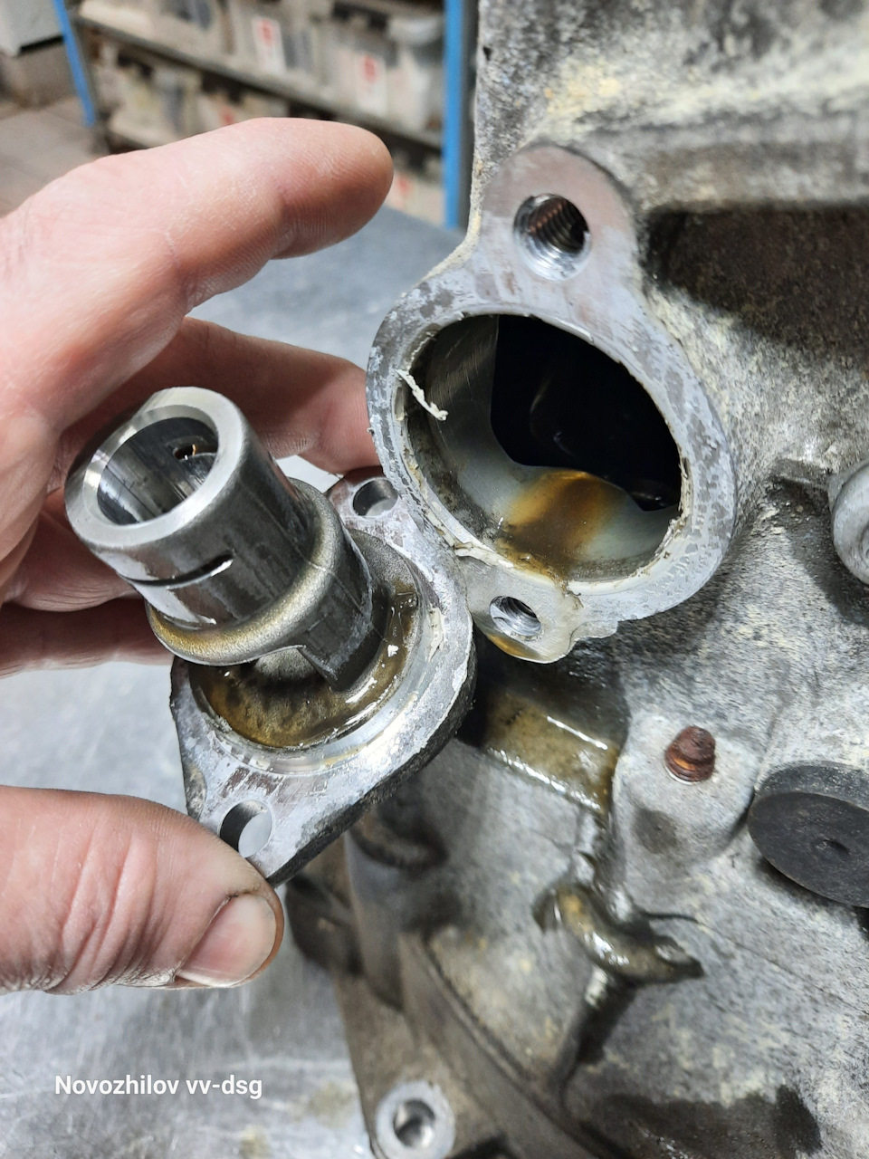 На фотографиях с "разборки" коробки, можно увидеть фрагмент поврежденной пружины, которая устанавливается в нижнюю крышку вала управления : 02J301256