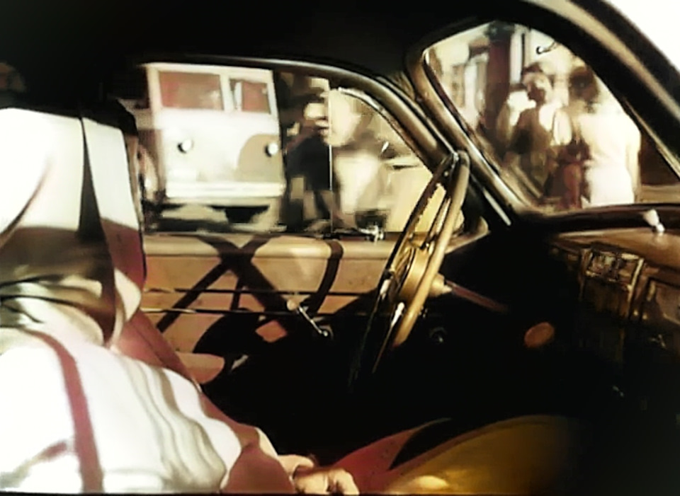 А обращали внимание на руль? Форма выемок на задней стороне, их глубина… И он из чёрного пластика, крашенный и уже частично облезлый. У другой машины, которую показывают внутри, где ещё спидометр линейный, руль точно такой же по форме, но покрашен, кажется, коричневым, и без дефектов. Ещё в месте примыкания спиц к центру, конусы блестящие со ступенькой, 1 в 1 как у Опель Капитан. В фильме в динамике при игре света-тени это чётко видно.