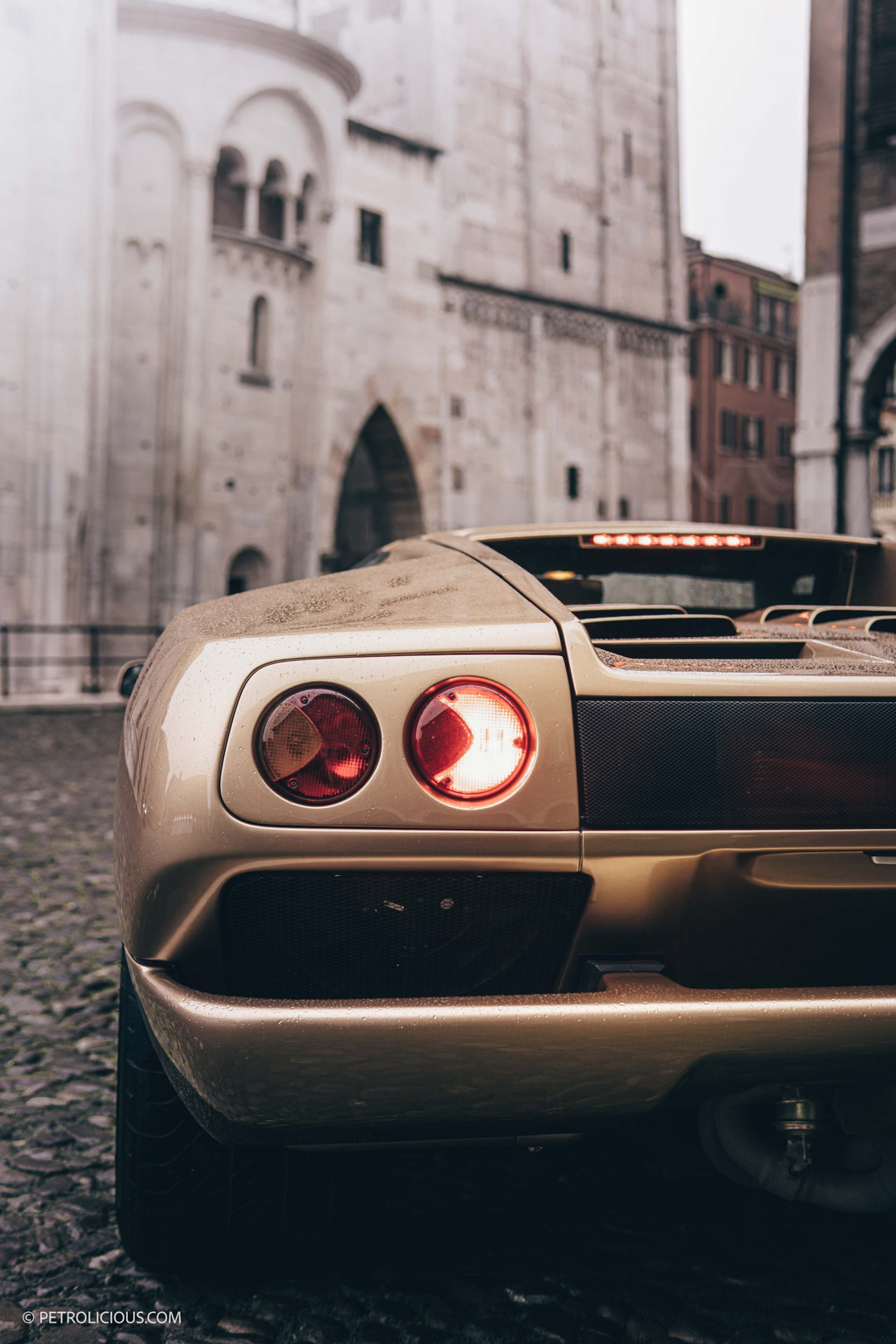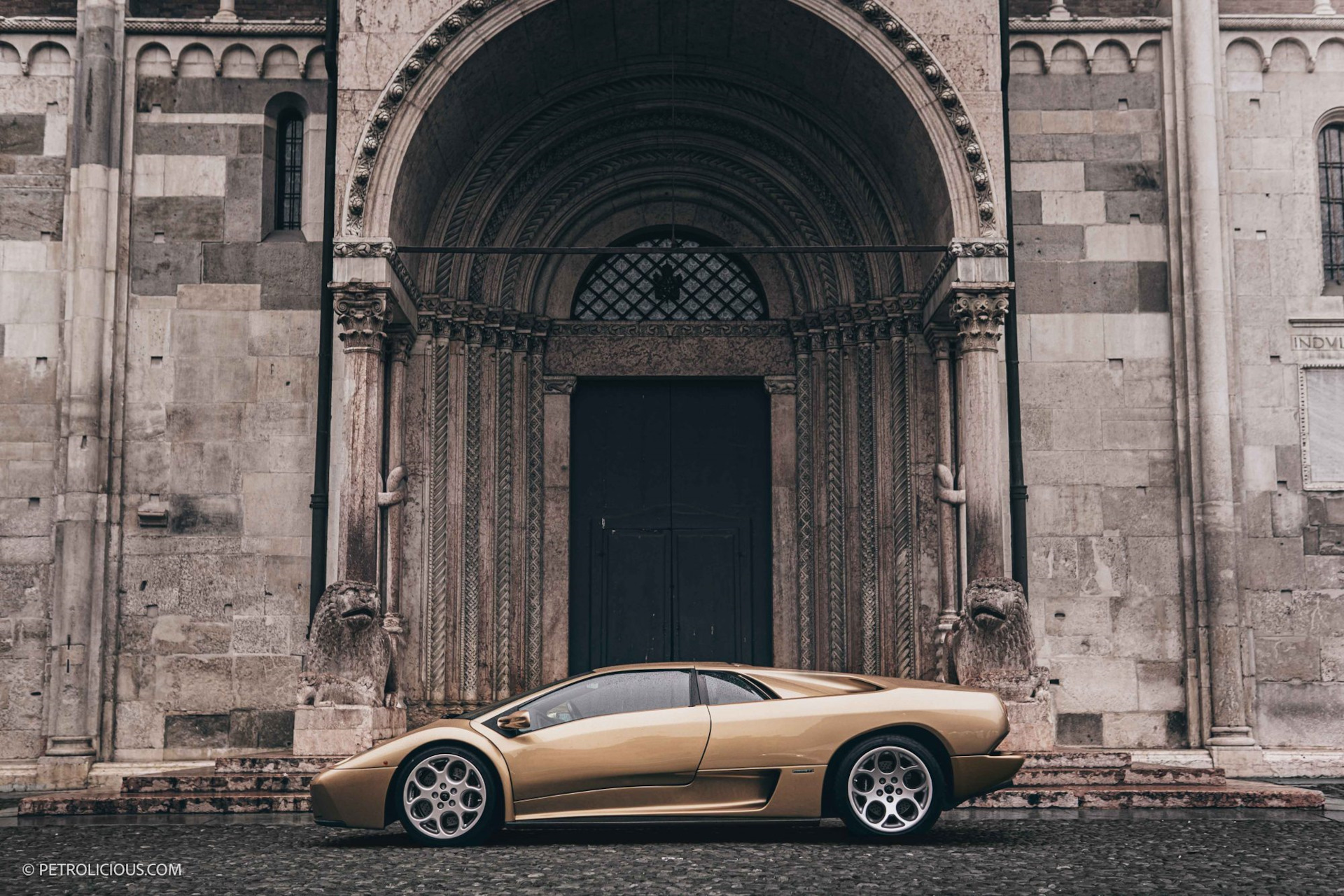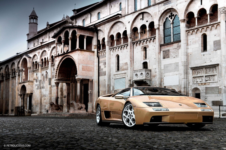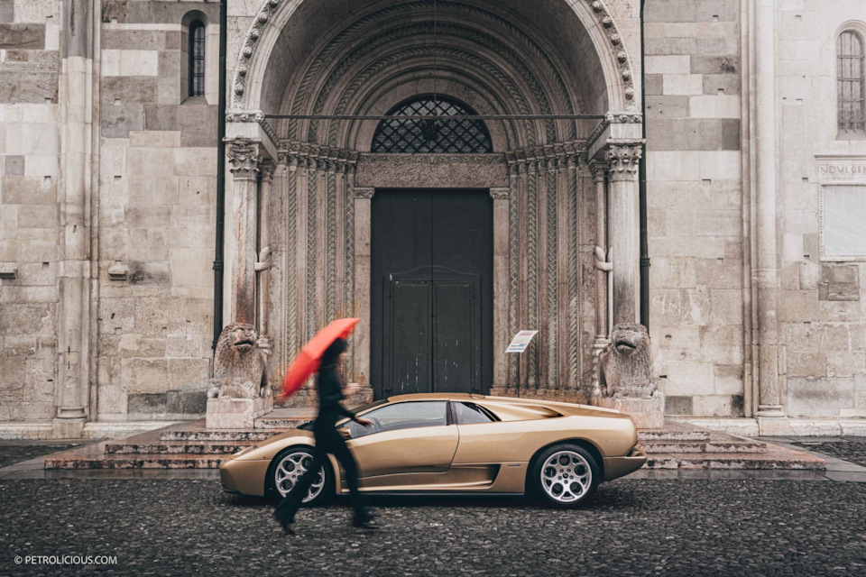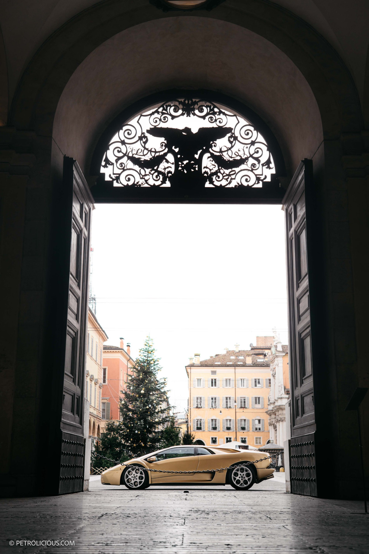 Пока мы направлялись к первому месту съёмки, я шёл рядом с машиной и наблюдал, как все вокруг провожают нас взглядом. Обычно я стесняюсь такого внимания, но сейчас точно знаю, что они, как и я сам, просто глазеют на Diablo. Это агрессивная машина, которая резко контрастирует с очень старой архитектурой Модены, но между этими контрастами всё равно есть ощущение синергии. Безусловно, цвет во многом помогает автомобилю влиться в окружающие его фасады и скульптуры. И хотя Diablo сам по себе довольно резкий и прямолинейный, здесь — в антураже бесчисленных арок, окаймляющих городскую площадь, — его изгибы кажутся плавными и естественными.