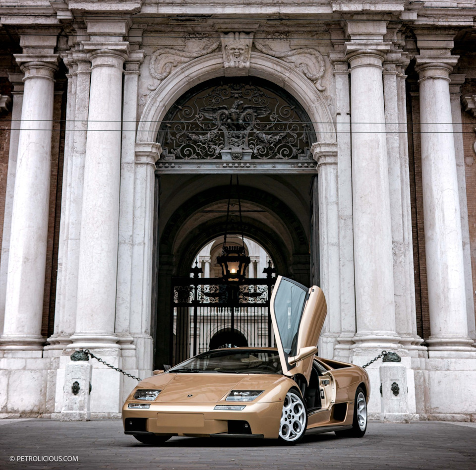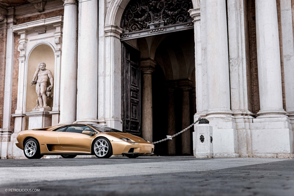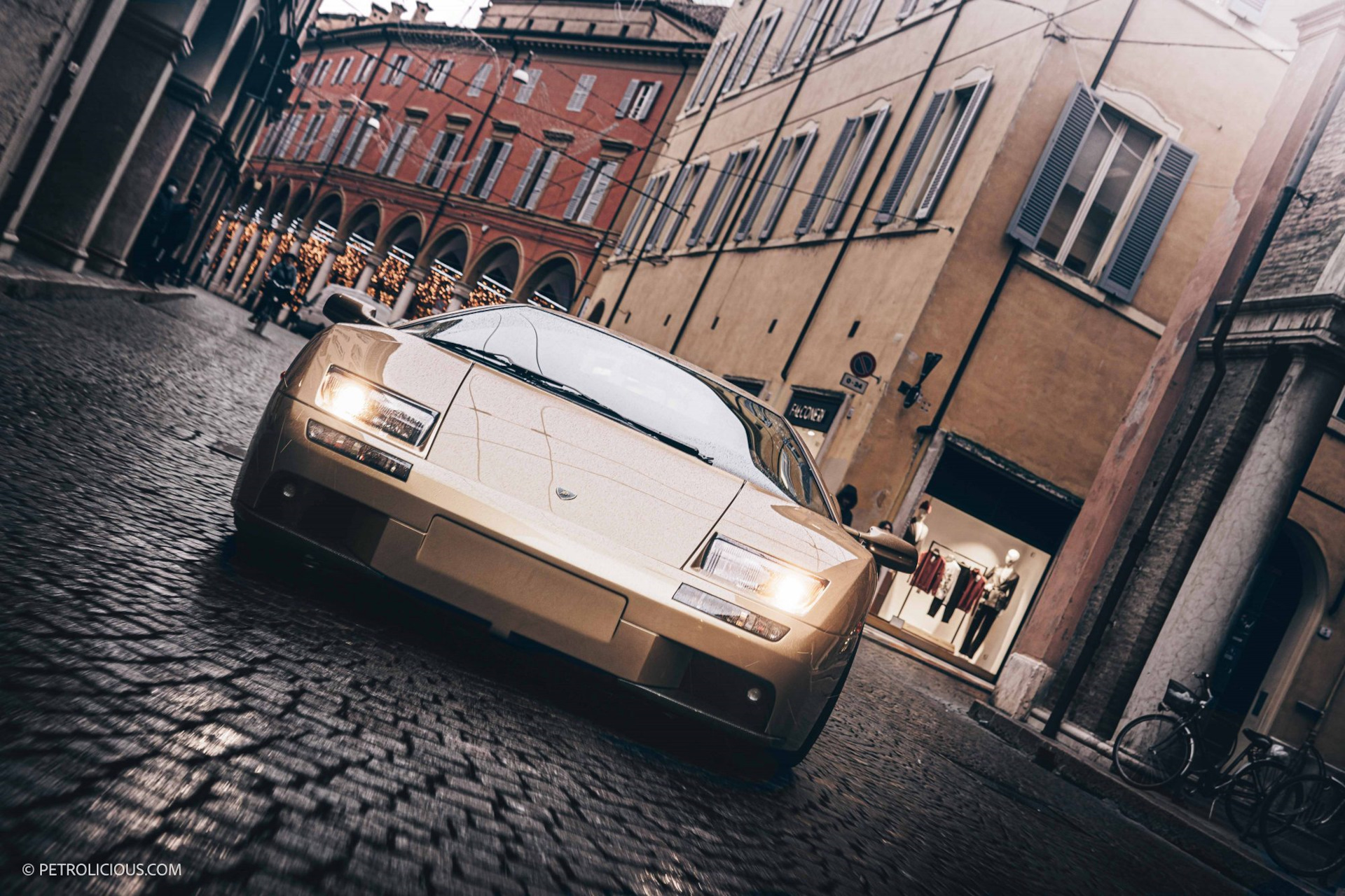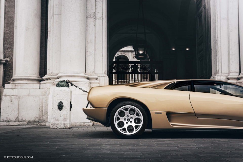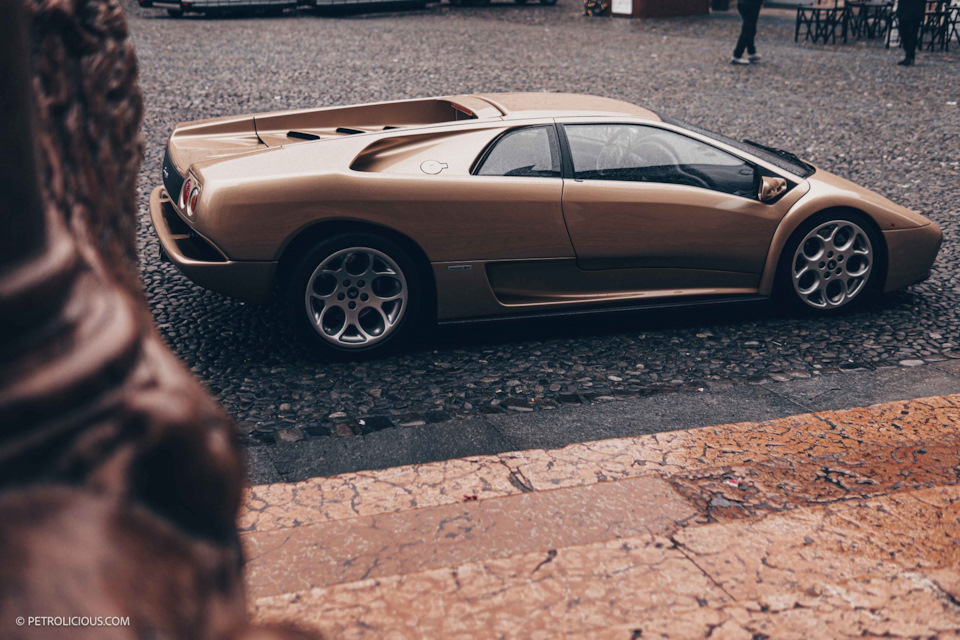 Пока мы направлялись к первому месту съёмки, я шёл рядом с машиной и наблюдал, как все вокруг провожают нас взглядом. Обычно я стесняюсь такого внимания, но сейчас точно знаю, что они, как и я сам, просто глазеют на Diablo. Это агрессивная машина, которая резко контрастирует с очень старой архитектурой Модены, но между этими контрастами всё равно есть ощущение синергии. Безусловно, цвет во многом помогает автомобилю влиться в окружающие его фасады и скульптуры. И хотя Diablo сам по себе довольно резкий и прямолинейный, здесь — в антураже бесчисленных арок, окаймляющих городскую площадь, — его изгибы кажутся плавными и естественными.