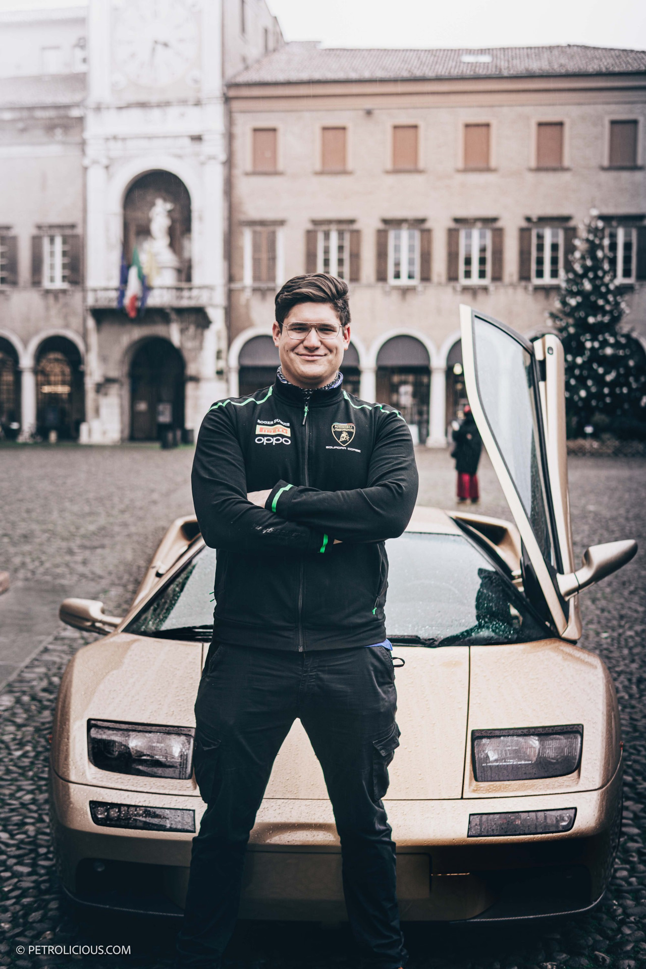 В день съёмок, накануне которого я очень мало спал — как и полагается, когда ожидаешь получить в своё распоряжение столь ценный исторический экспонат, — прогноз был весьма переменчивым. Облака, солнце, дождь, небольшой туман — одним словом, веселье. Я встретился с моим другом Джузеппе из Lamborghini, чтобы отвезти машину и заводского тестового пилота Винченцо — именно ему предстояло провести этот день за рулем, — в центр Модены. Тут я просто обязан поблагодарить своего хорошего друга Энрико, который тоже работает в Lamborghini, выступившего в роли катализатора, ведь именно благодаря ему эта съёмка стала возможной. Удивительно, сколь многого можно добиться, если вежливо попросить!