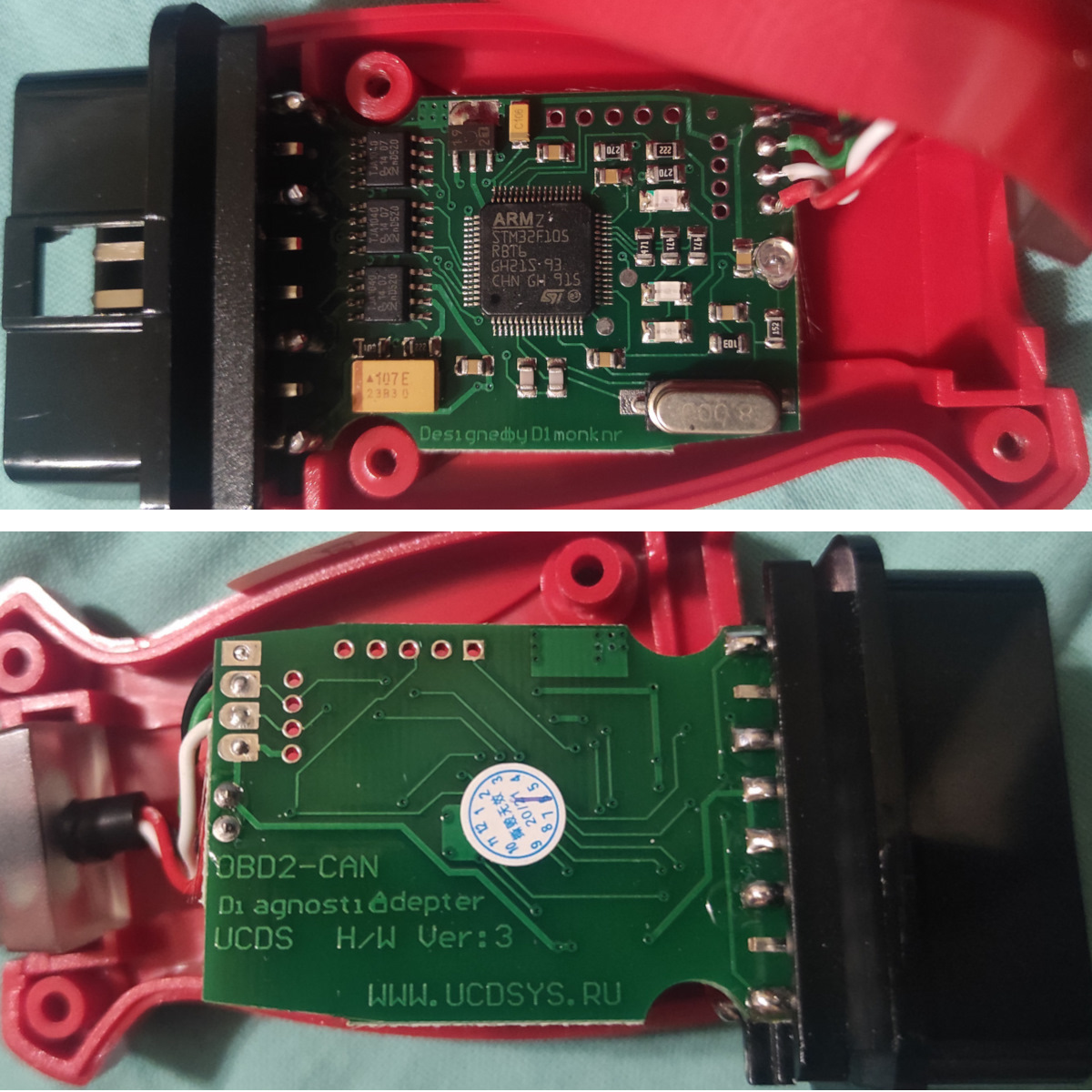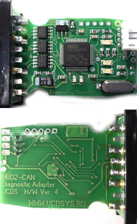 Поиск по картинкам в гугле с ключевыми словами "STM32/OBD2/USB" вывел на заметку пользователя RED4911 с разобранным ucds адаптером