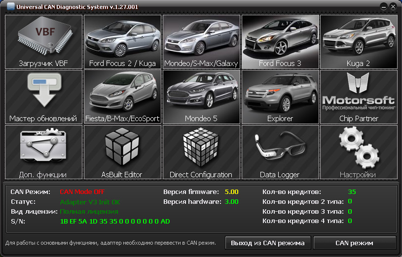 Немного подробнее про непригодные китайские адаптеры и собственно про сам адаптер. На сайте ucdsys.ru продается адаптер ucds и одноименная программа для диагностики автомобилей Ford, сама программа ucds является альтернативой официальной программе для диагностики автомобилей Ford IDS, но работает программа ucds только со своим адаптером, т.е. тоже вариант вендорлока как и у российского canhacker-а, но только разработчики ucds пошли еще дальше и продают адаптер и программу с минимальным функционалом, а для расширения функционала надо приобрести дополнительную подписку. Т.е. захотел владелец обновить прошивку в блоке, то он долнительно должен заплатить за эту процедуру и т.д.