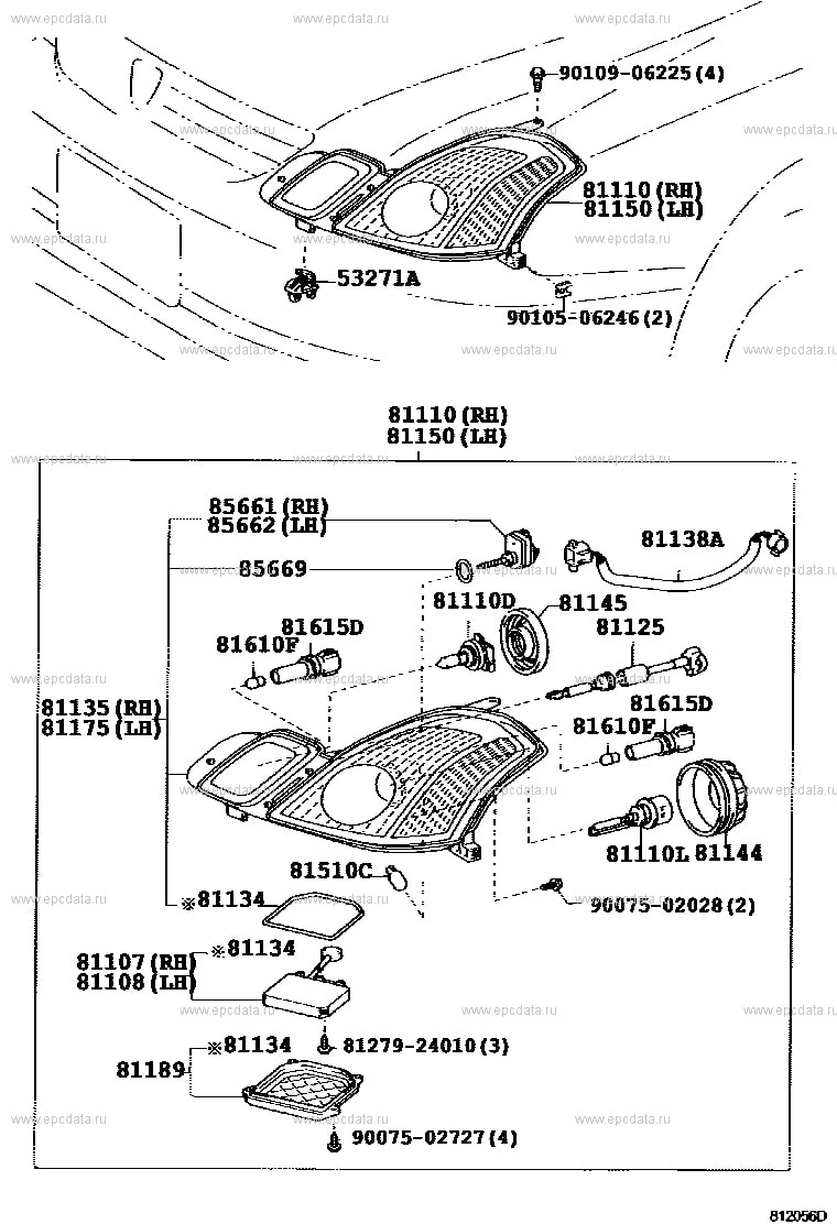 81135 – Unit, headlamp, rh – 81140-22850 – Корпус правой фары