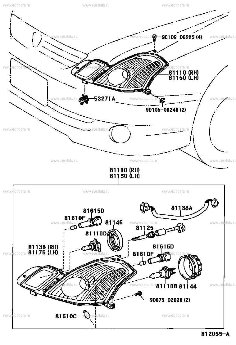 81110 – Headlamp assy, rh – 81110-22850 – Правая фара