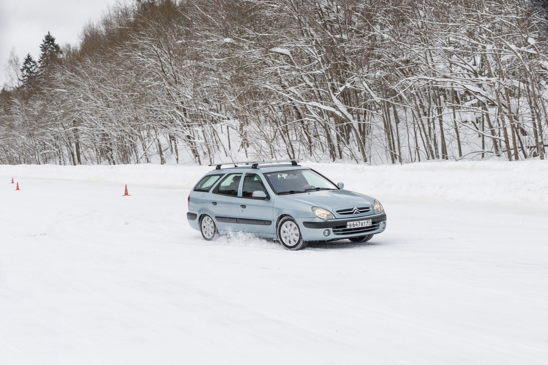 Далее проезд по двум зеркально расположенным дугам переменного радиуса. В случае с моей переднеприводной машиной желательно в управляемом сносе.