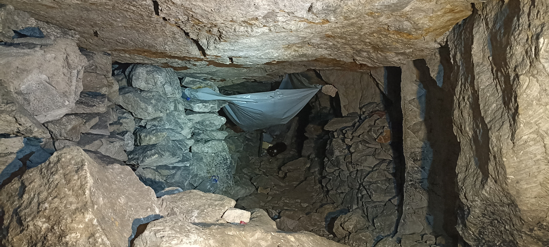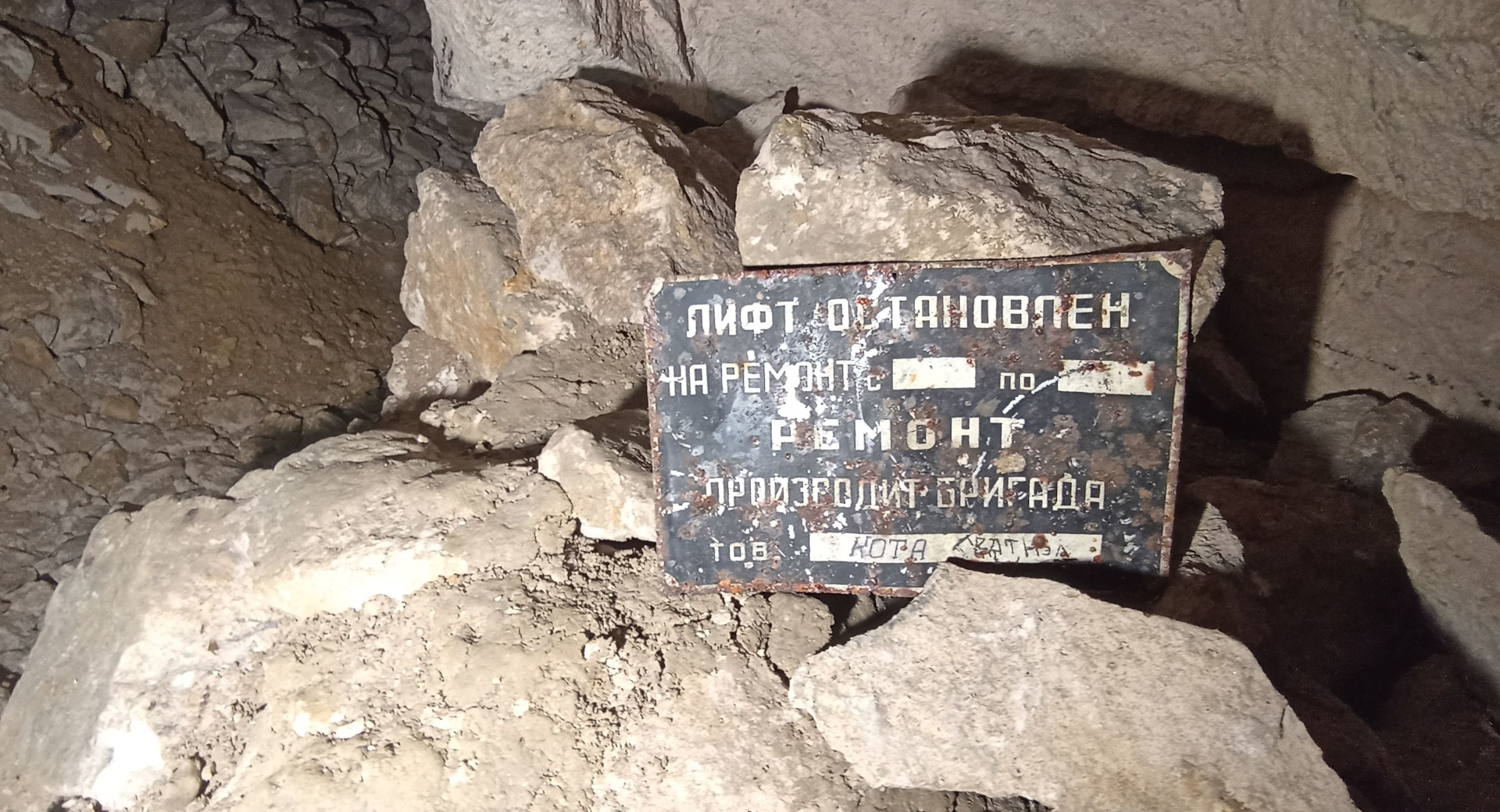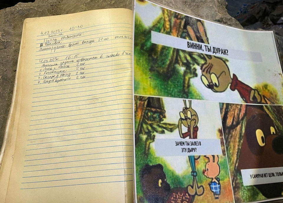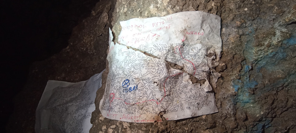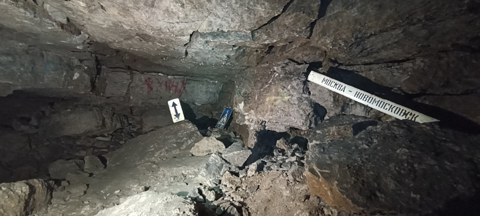 Но перед этим всё-таки пошли проверить, где там обвал, и не зря. Оказалось, обвал случился в той «комнате», где раньше был стол с еще одним блокнотом про вынесенный мусор.